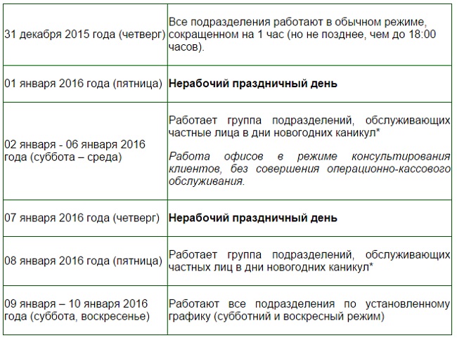 *Подробный список подразделений, обслуживающих частных лиц в дни новогодних каникул можно найти на сайте www.sberbank.ru в разделе «Отделения и банкоматы».