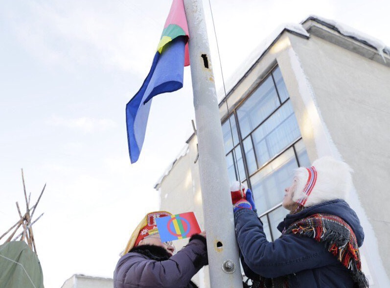 В Национальный день саамов в Мурманске подняли саамский флаг