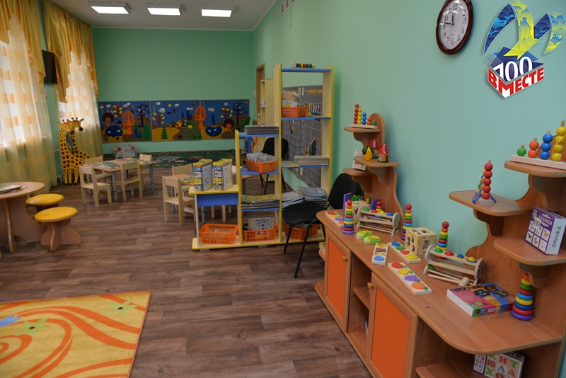 Рабочие заменили инженерные сети, отремонтировали фасад, установили новые окна и двери, завезли новую мебель. Внутри здания расположились спальни, игровые комнаты, залы для музыкальных и физкультурных занятий, пищеблок, медицинский блок и служебно-бытовые помещения.
