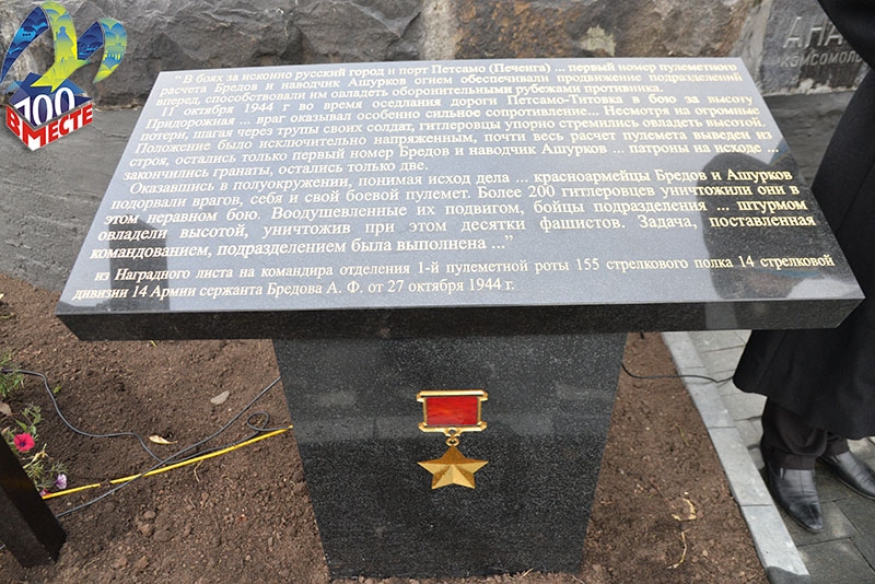 «На доске находится выписка из наградного листа с рассказом о подвиге Анатолия Бредова. Кроме того, выполнено асфальтирование пешеходной зоны, установлены дополнительные светильники, появилась тротуарная плитка из натурального гранита, а также скамейки», - сообщают на сайте администрации.