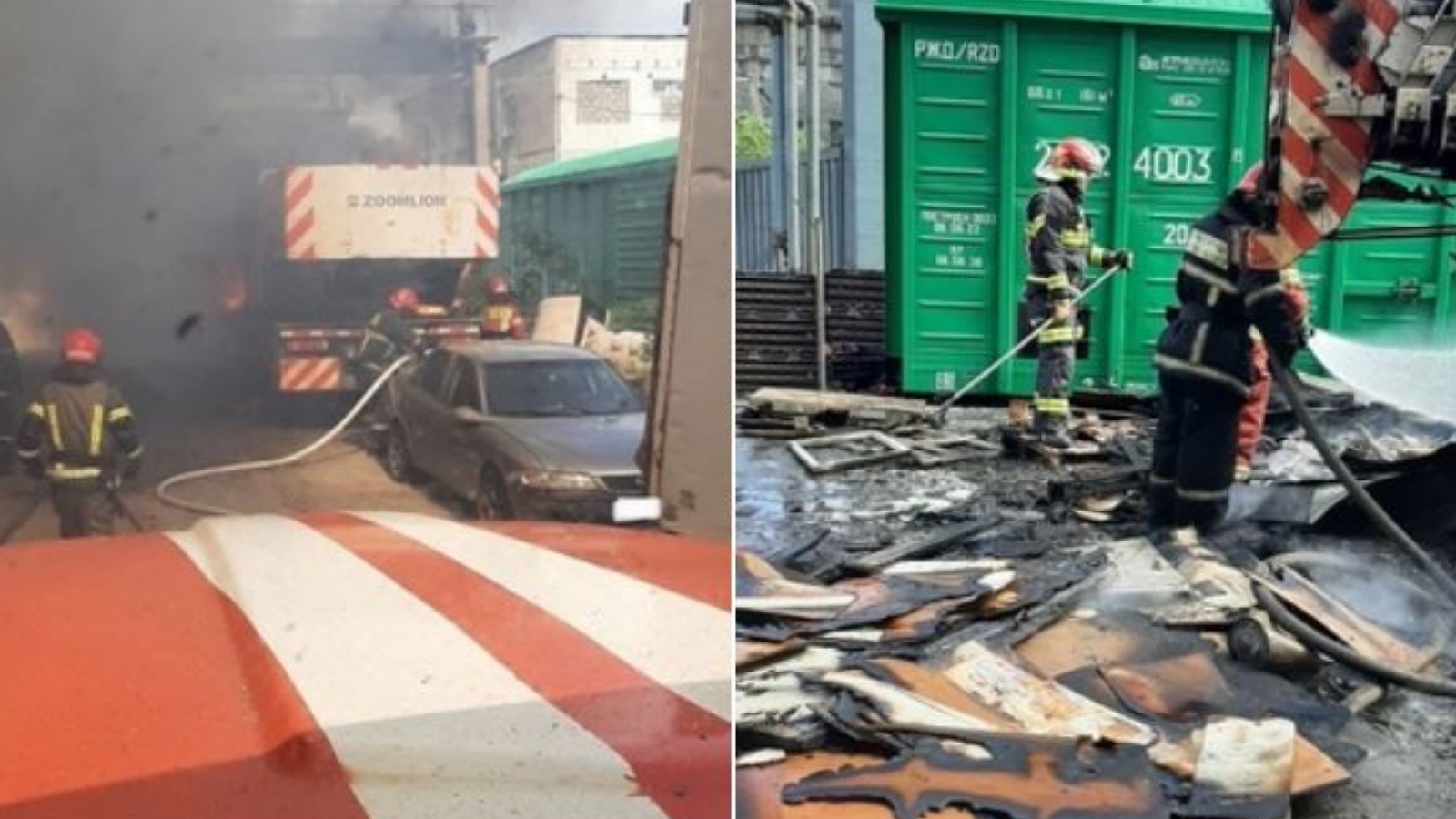 В 13.08 пожар полностью ликвидирован. В результате пожара сгорела кабина автокрана на площади 3 кв. м.