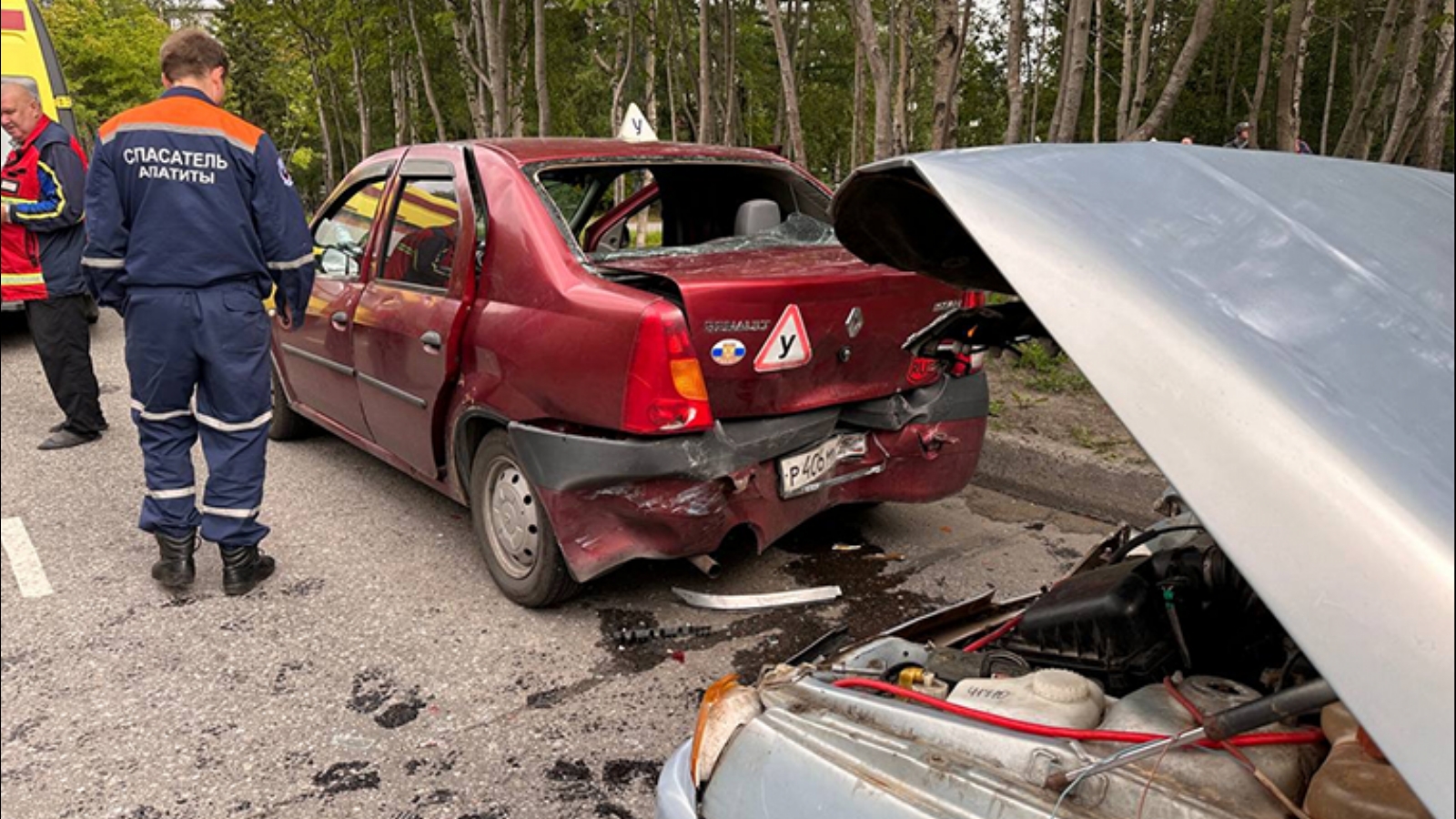 На улице Ферсмана в Апатитах «Лада» двенадцатой модели на большой скорости врезалась в стоявший учебный автомобиль.