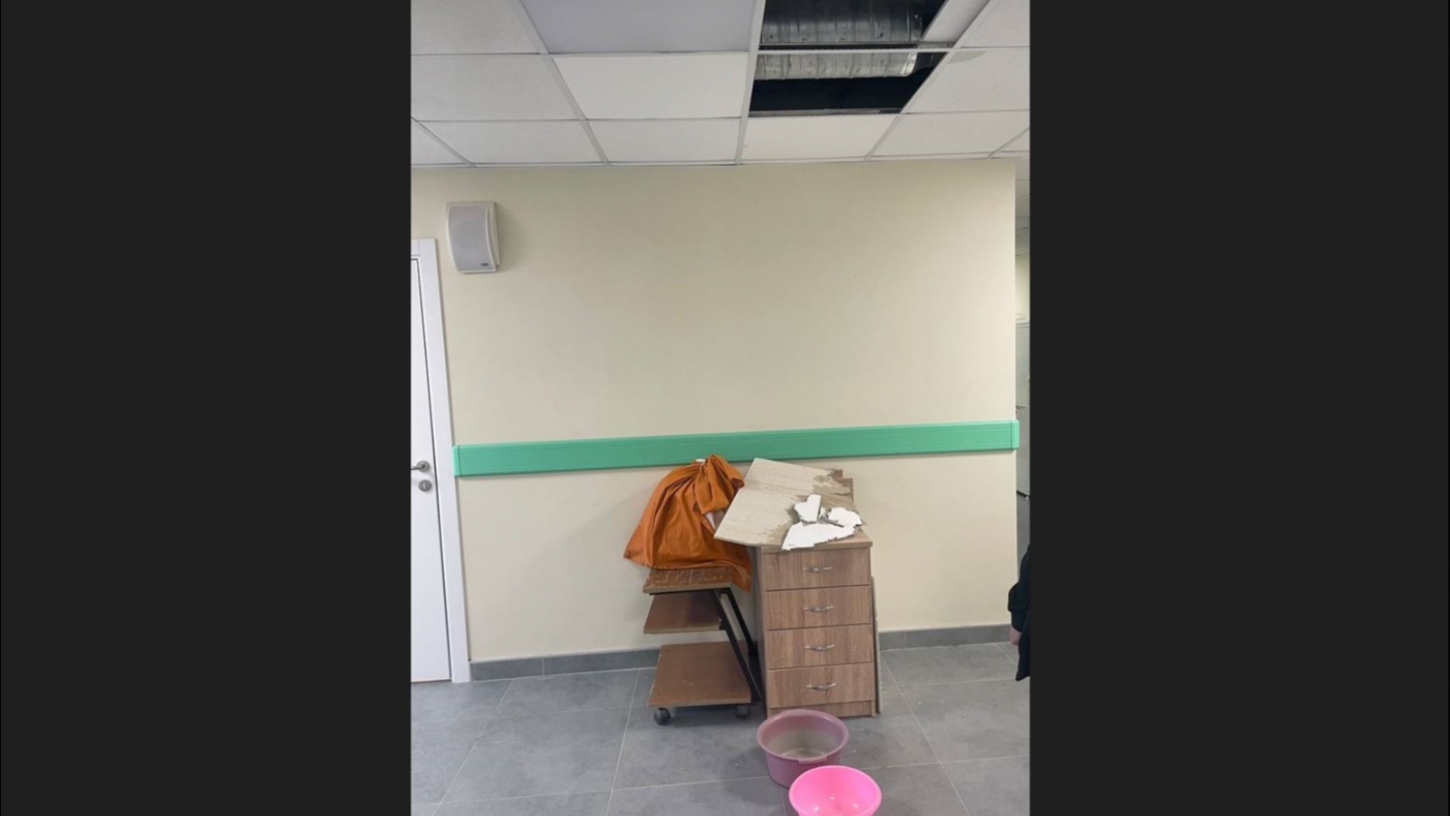 Напомним, в отремонтированной поликлинике на головы пациентов падают куски потолка.