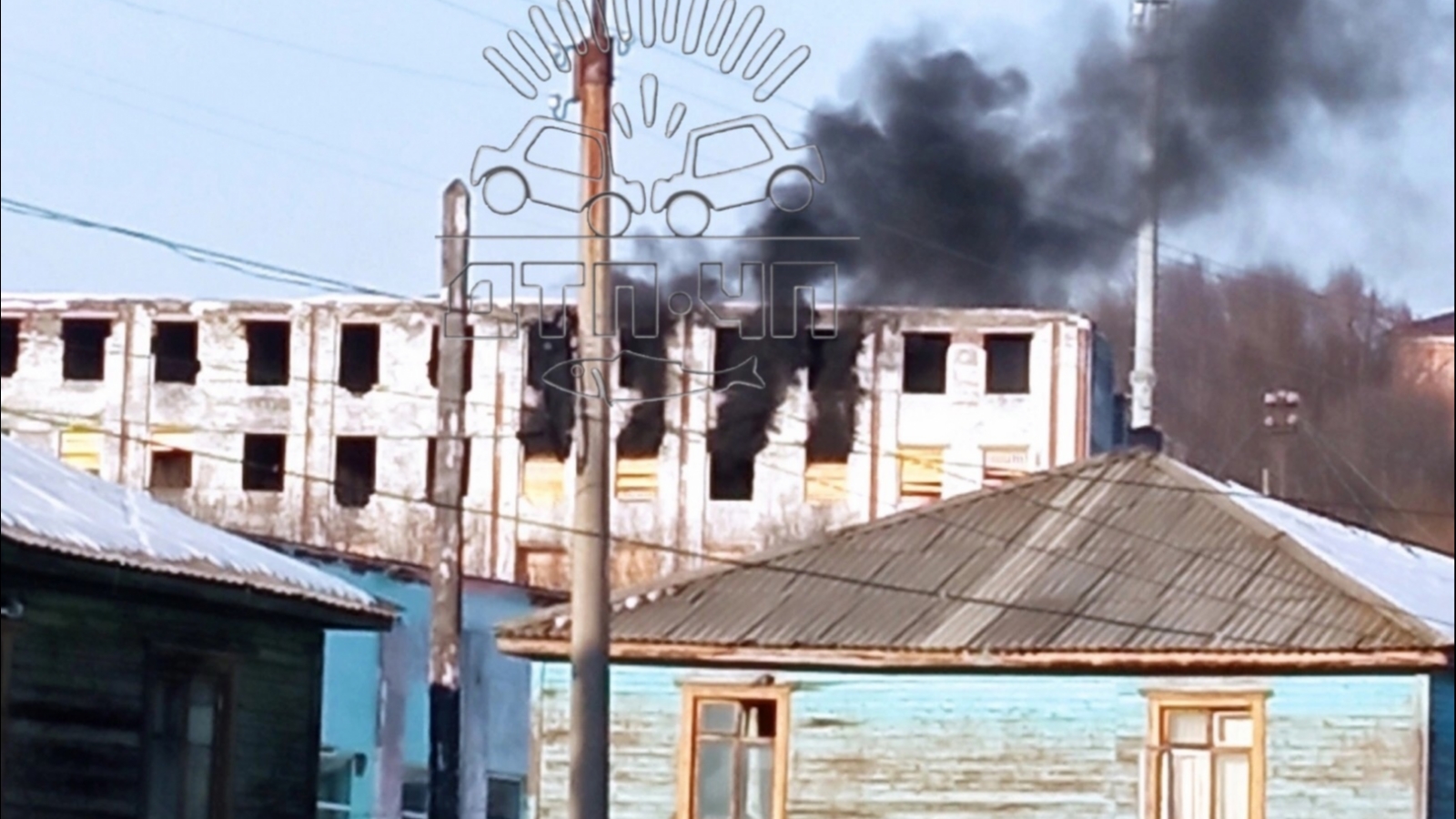 На опубликованном в паблике «Мурманск ДТП ЧП» снимке видно, как над «заброшкой» поднялись клубы черного дыма.