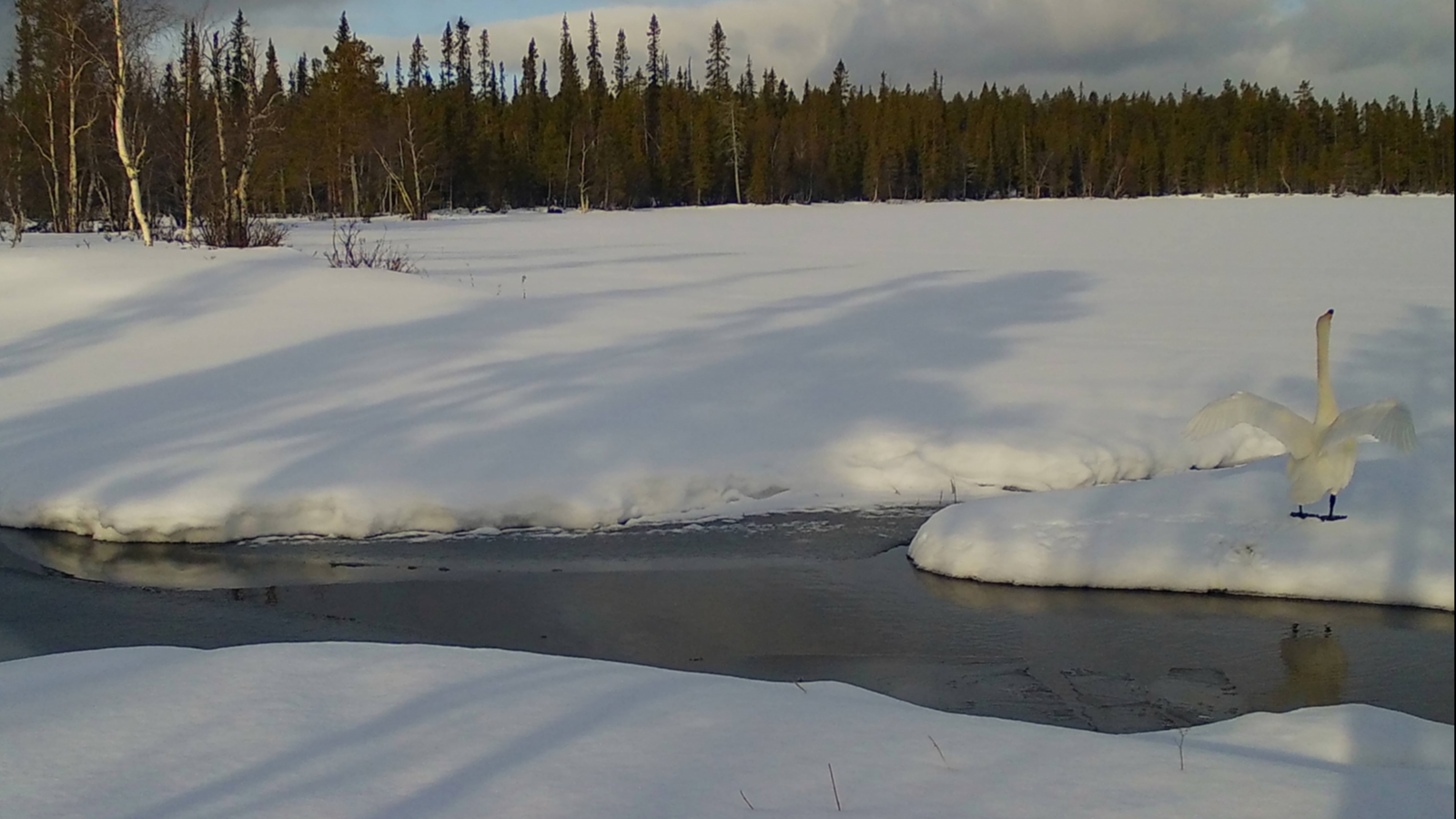 В Заполярье вернулись лебеди-кликуны. Их появление зафиксировала установленная фотоловушка.