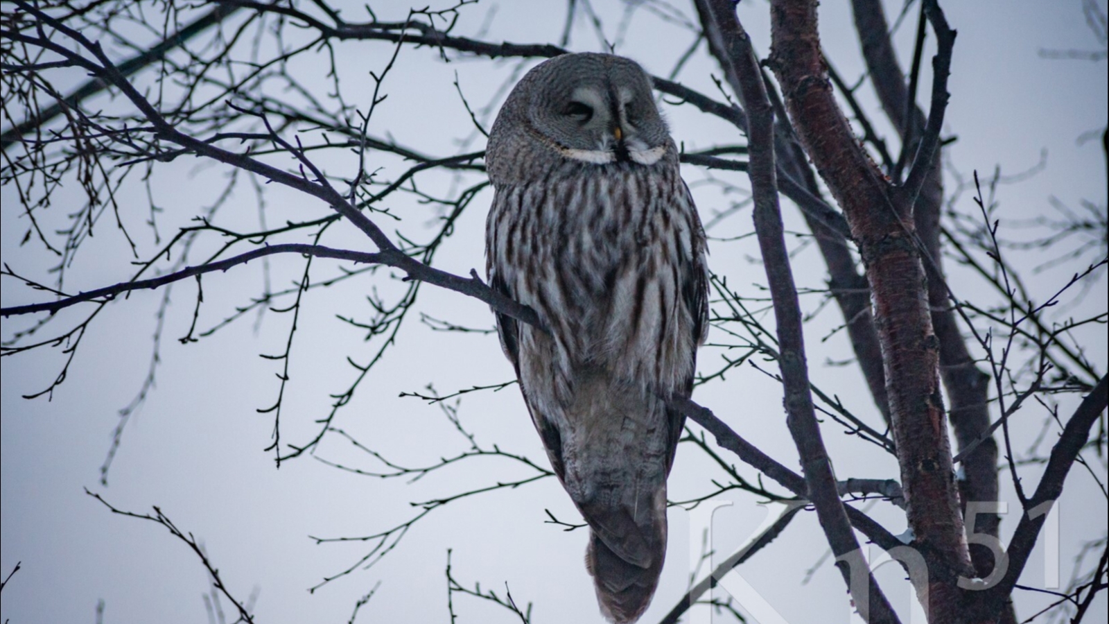 В Заполярном местная жительница запечатлела на камеру редкий вид совы - бородатую неясыть. Птица занесена в Красную книгу Мурманской области.
