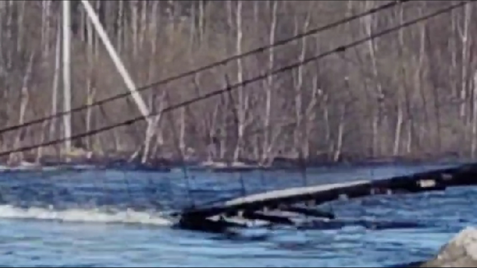 Подвесной мост в Лопарской ушёл под воду [видео]