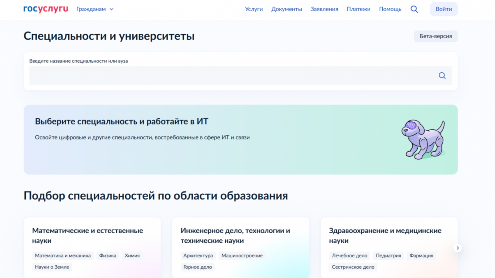 На портале госуслуг запущен сервис «Вуз-навигатор», позволяющий абитуриенту подобрать специальность и учебное заведение по своим критериям.