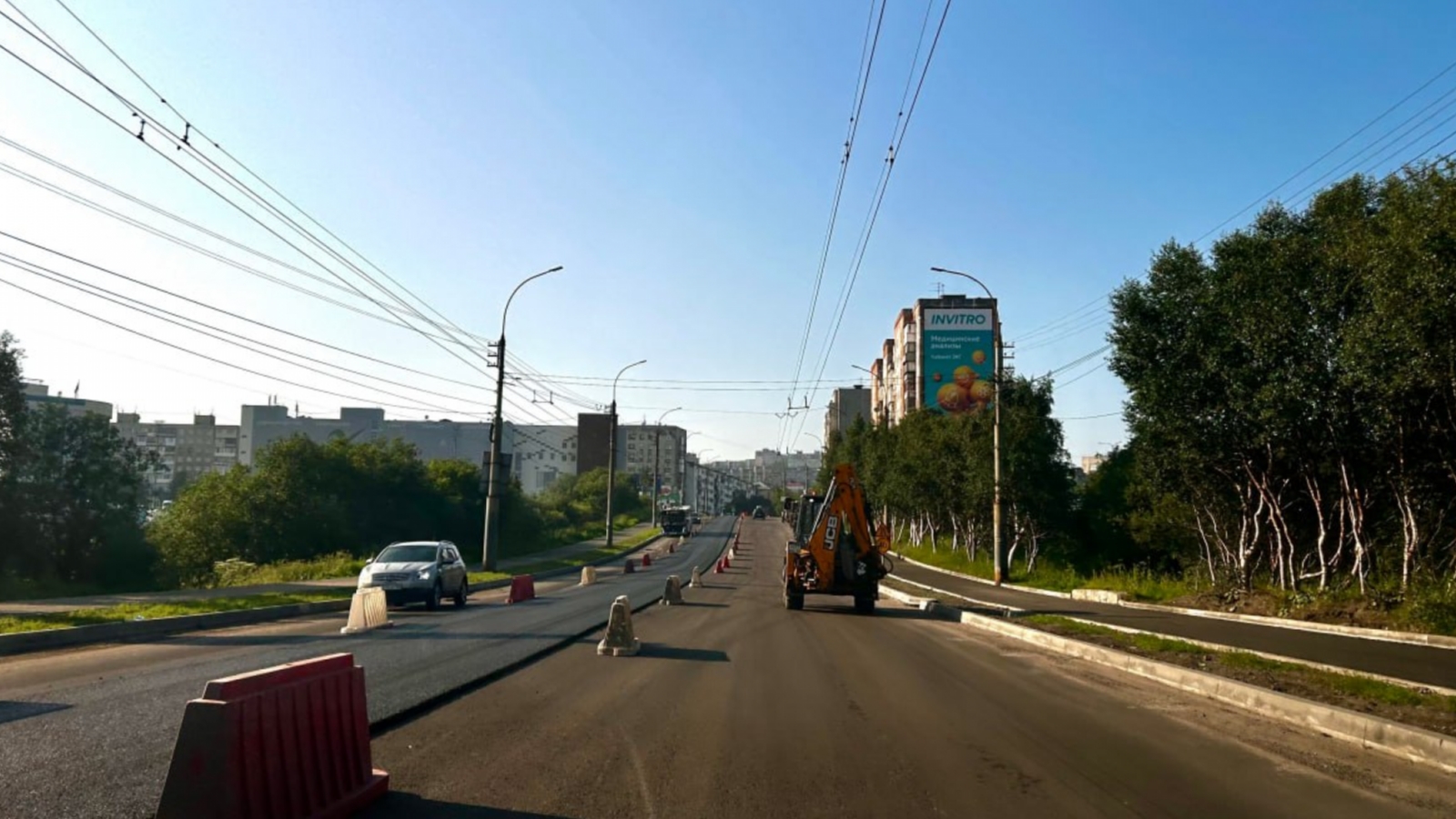 На улице Полярные Зори, от проспекта Ленина до улицы Карла Маркса, началась укладка верхнего слоя проезжей части.