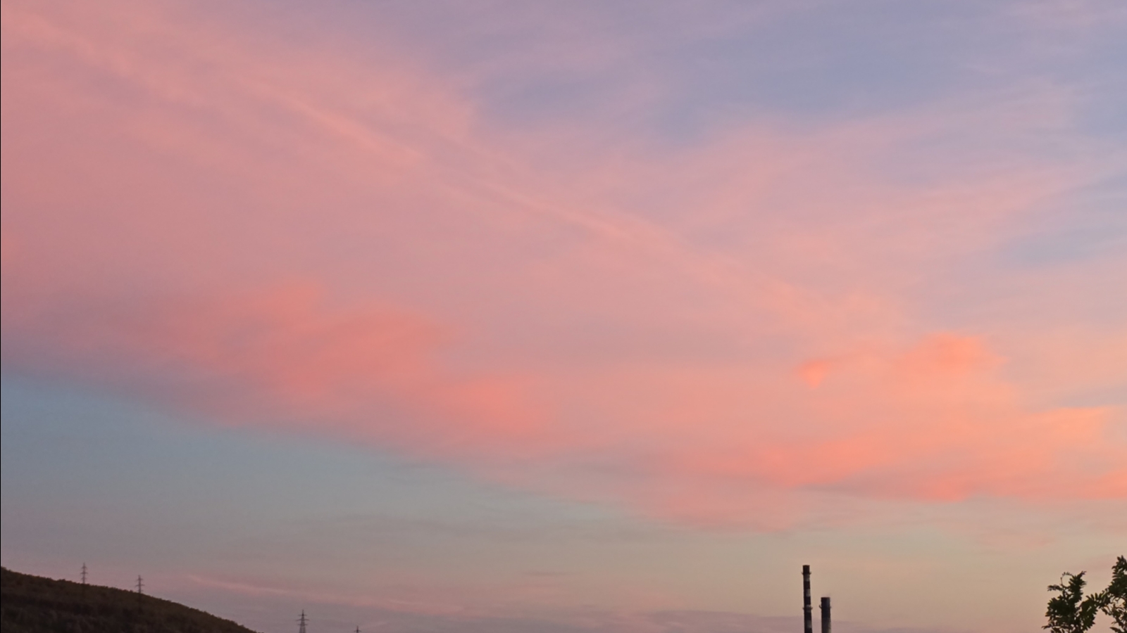 В Мурманске облака в южной части неба окрасились в нежно-розовые цвета.
