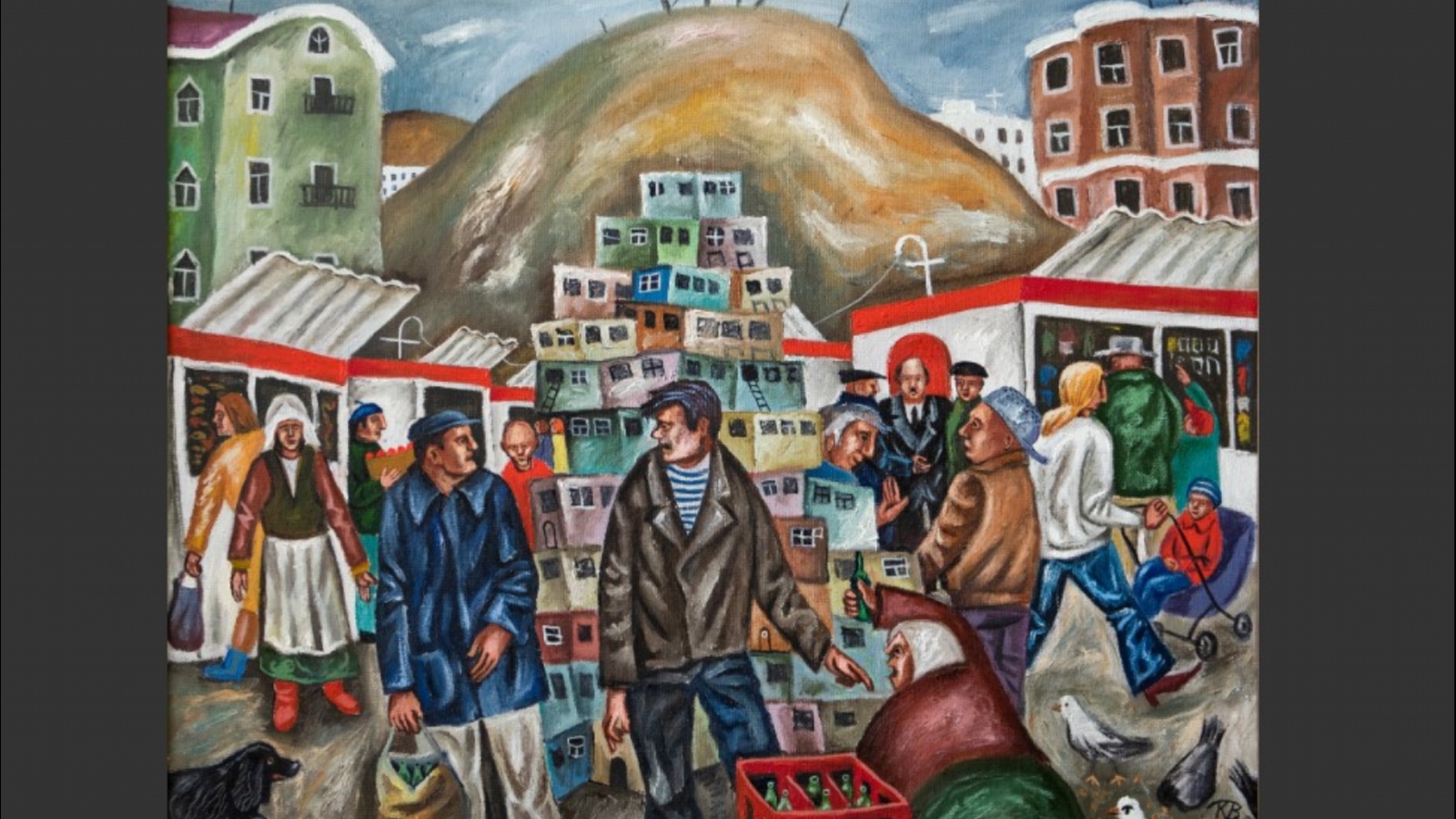 Но, безусловно, главной темой творчества автора является жизнь города. Непарадный городской пейзаж с бытовыми сценами, ярко и динамично иллюстрирующий ироничное и неравнодушное отношение к жизни.