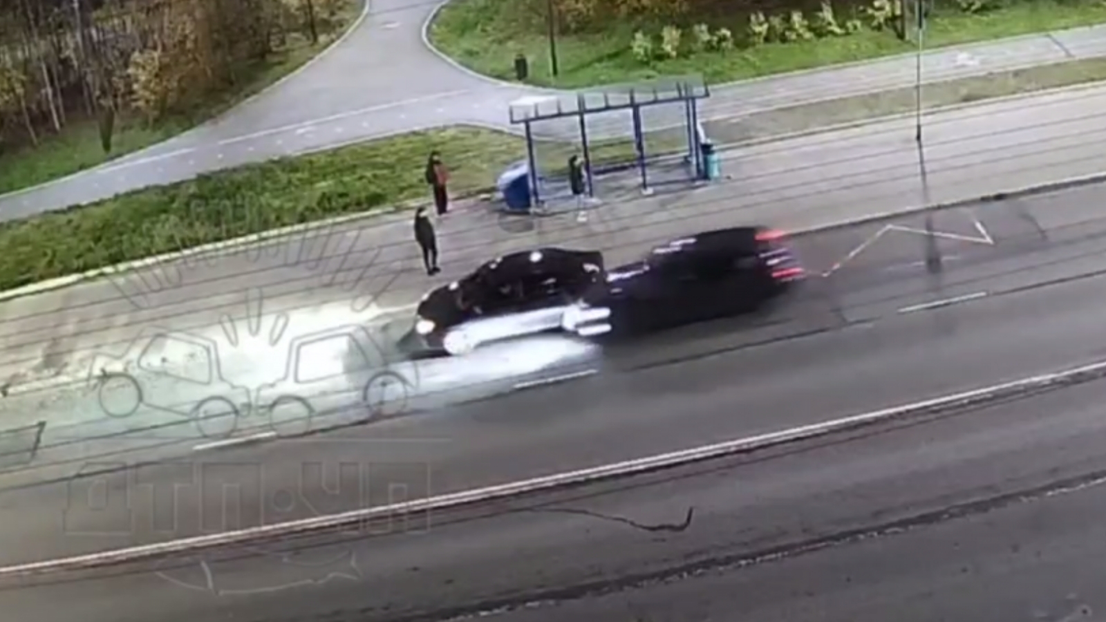 Один из них остановился у остановки, и через пару мгновений в него врезалась ехавшая сзади машина.