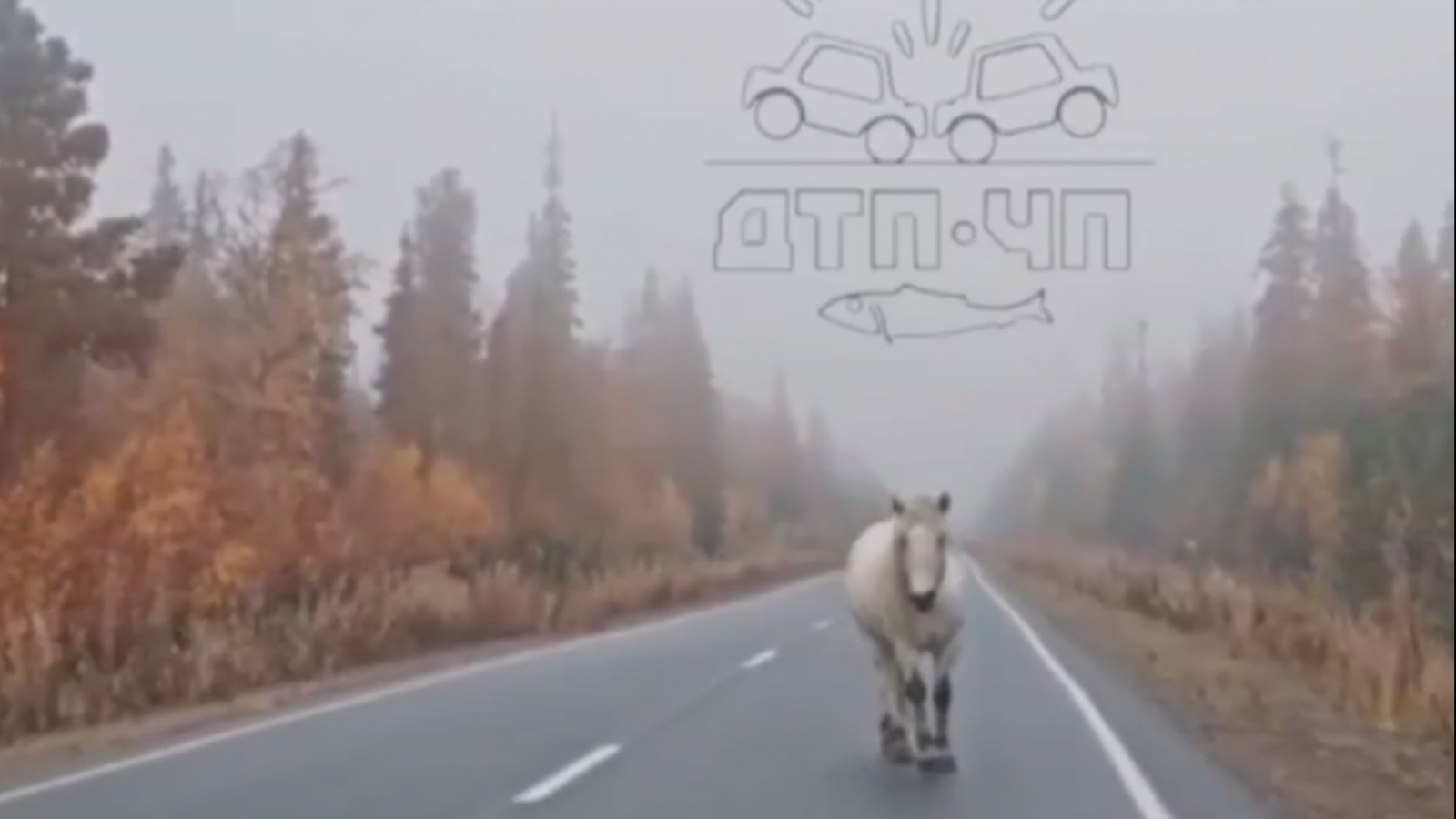 По пути в Варзугу водитель нашёл в тумане лошадку [видео]