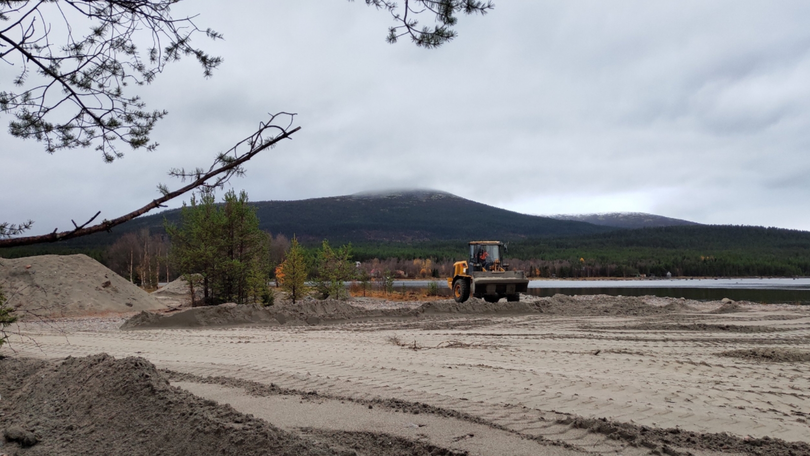 Берег засыпают песком. За пару дней, со слов местных жителей, появился новый участок, и трактор активно продолжает работать.