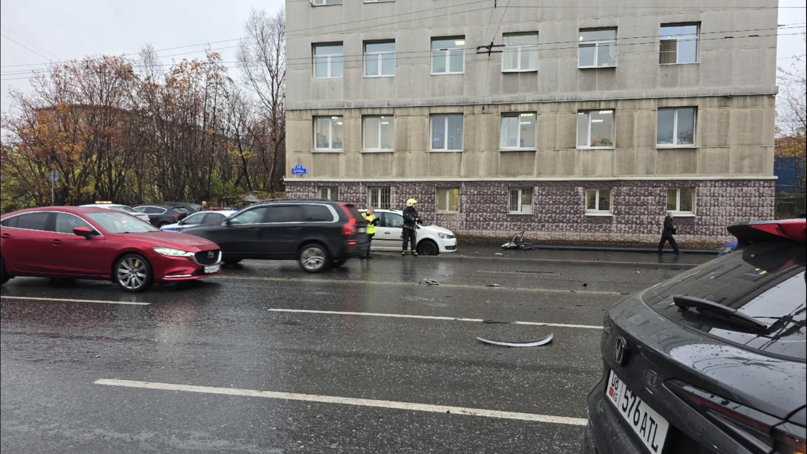 На улице Шмидта, у здания Гидрометцентра, в понедельник случилось крупное ДТП. Об этом сообщил корреспондент СеверПост, оказавшийся на месте.
