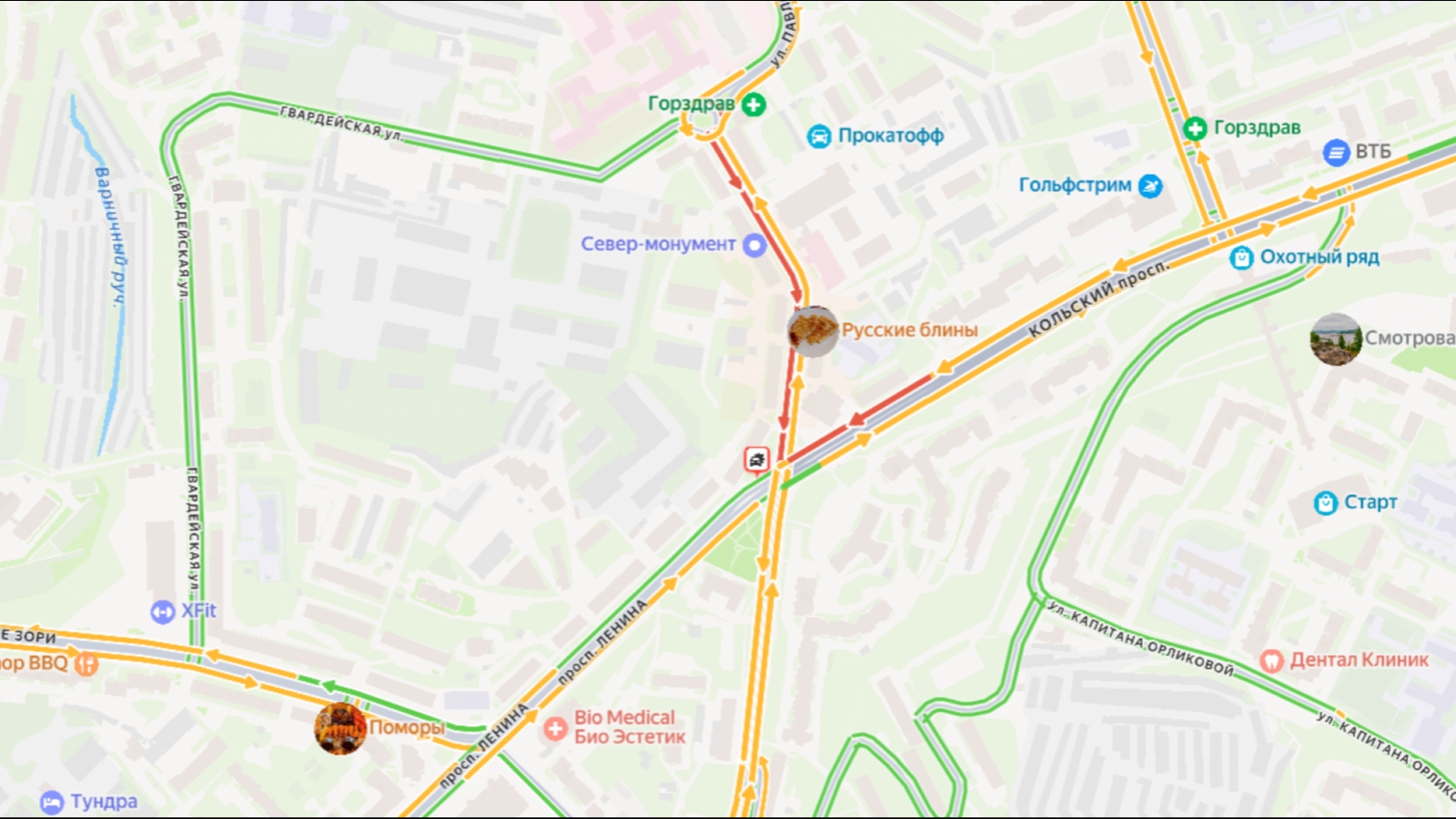 16 10 2025В результате столкновения образовался затор на выезде с Больничного и на Кольском проспекте в сторону севера.