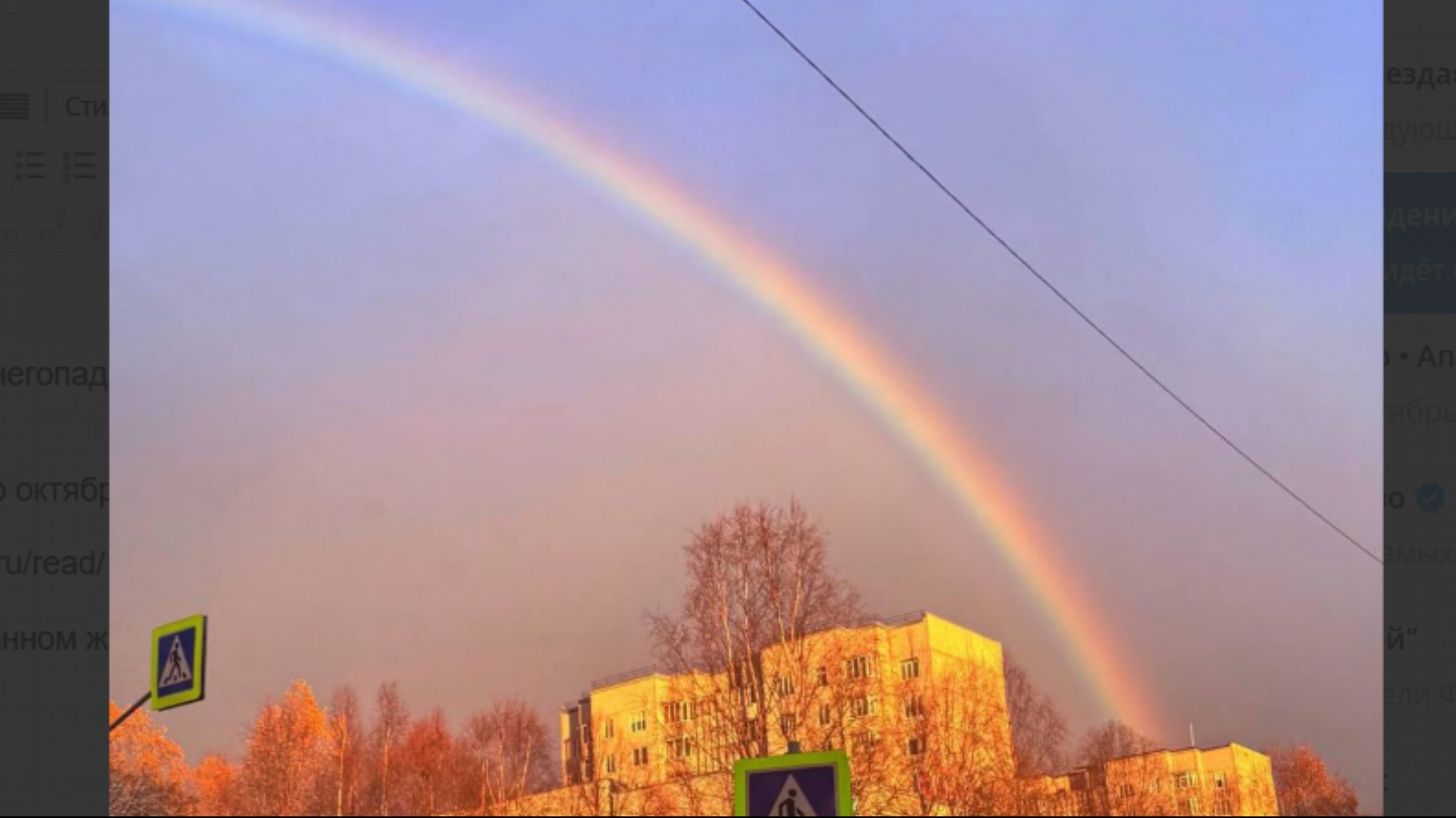 В лучах нежаркого октябрьского солнца радуга выглядит особенно ярко.
