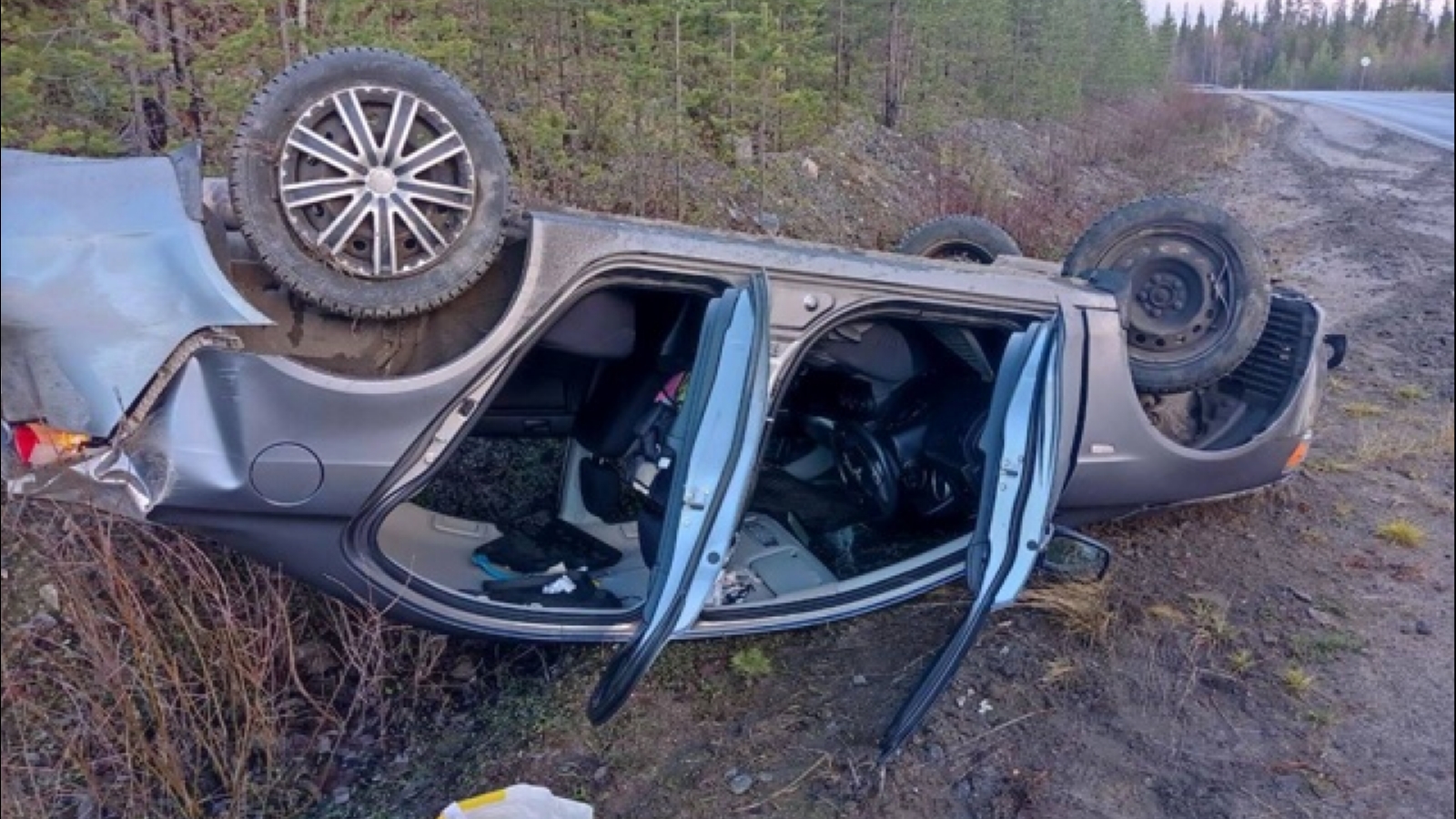 Автомобиль съехал в кювет и опрокинулся на 49-м километре трассы Кола — Лотта.