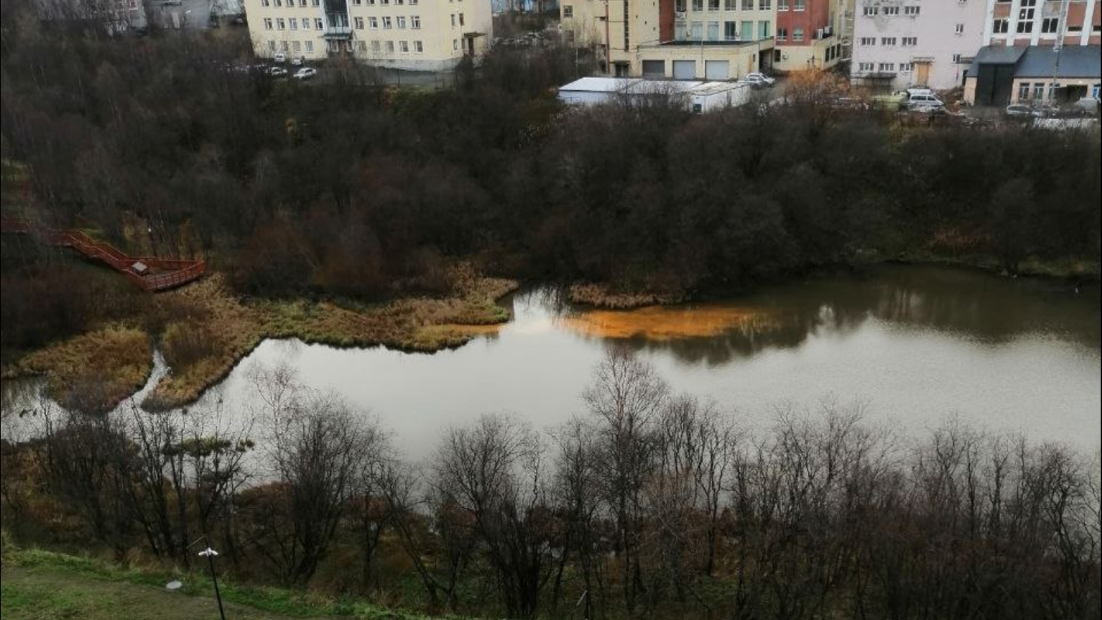 В Мурманске жители обратили внимание на состояние ручья Чистый. Северяне увидели в водоёме пятно.