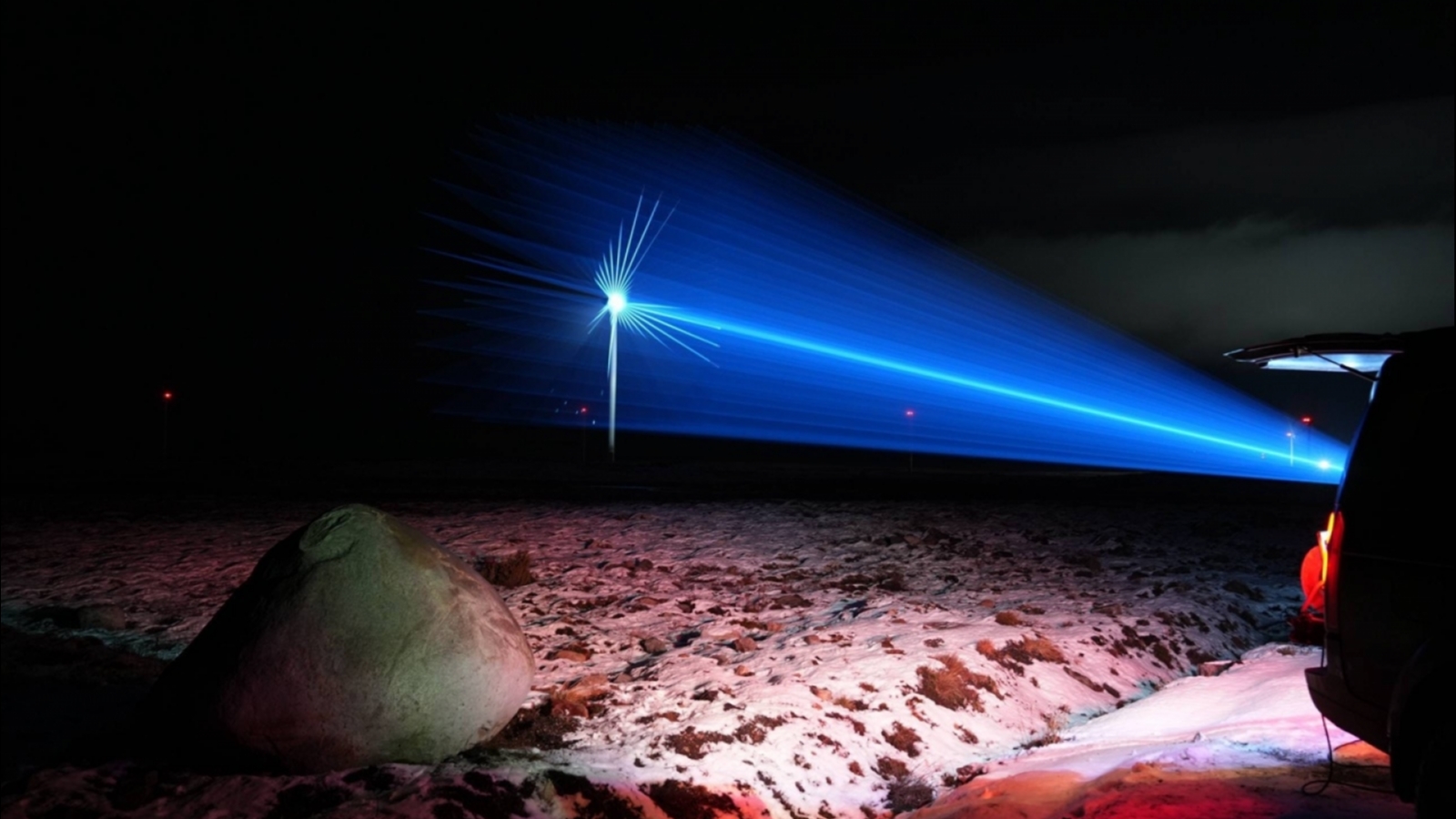 Суть проекта - аудиовизуальный перформанс, где лазерные лучи и звук соединились с мощью ветра.
