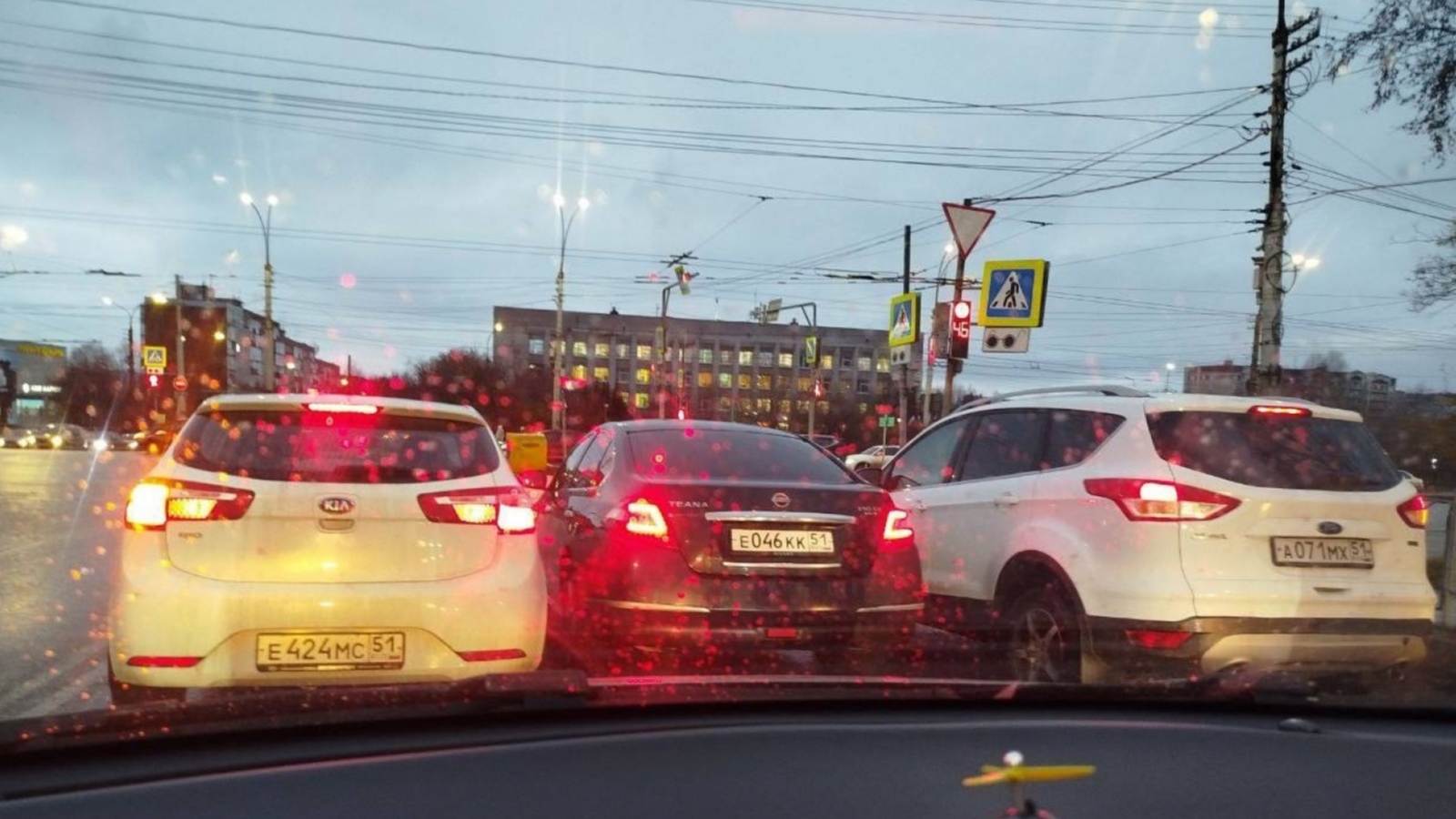 В Мурманске водитель автомобиля Toyota на перекрёстке Шевченко — Кольский проспект нашёл третий ряд.