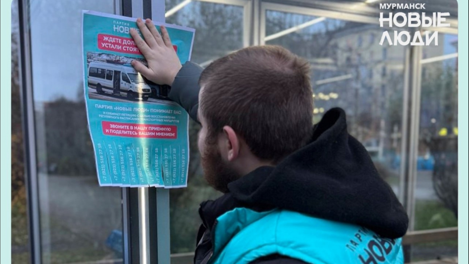«Новые люди» в Мурманске клеят листовки прямо на остановки?