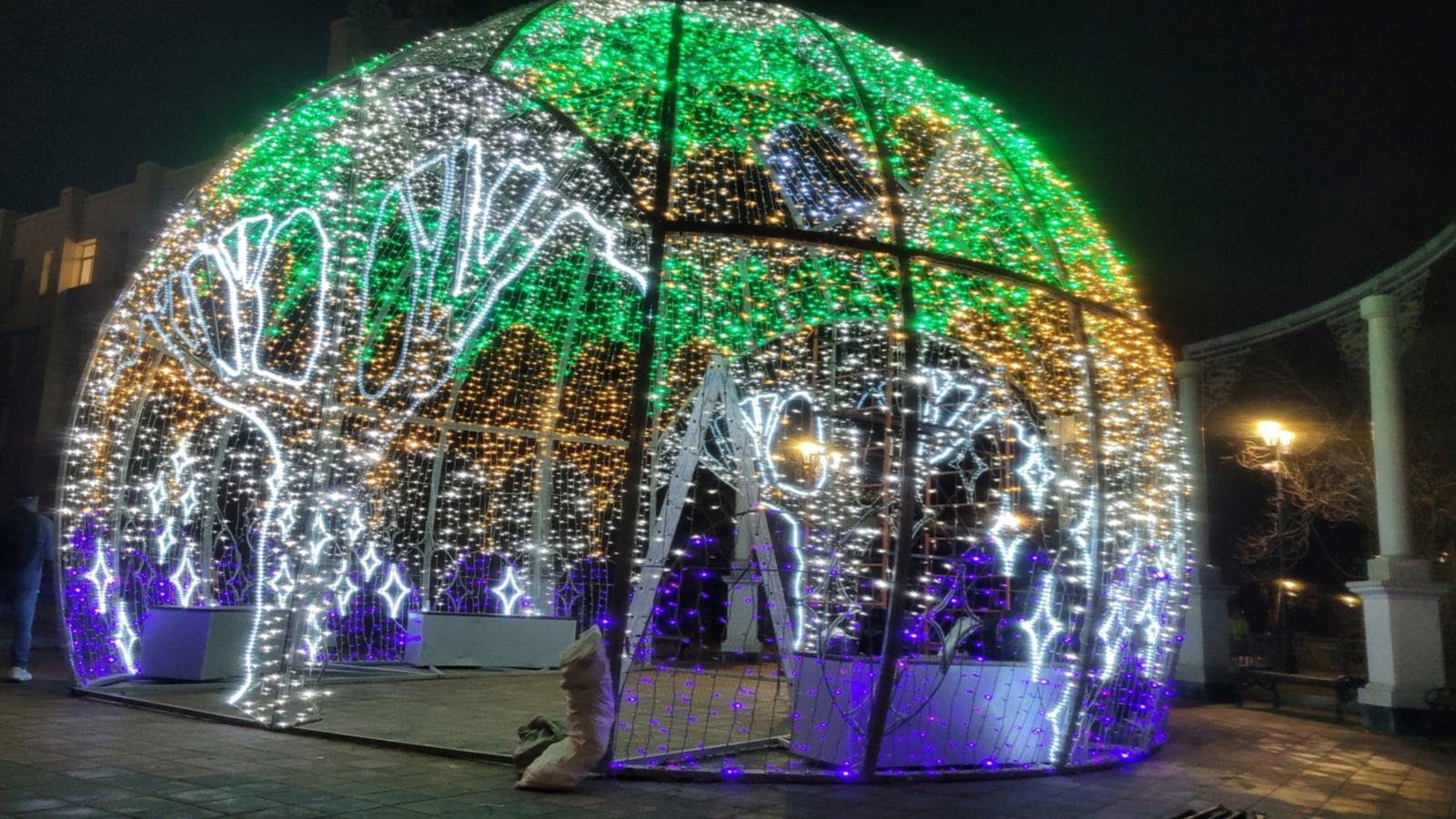 В областном центре на Театральном бульваре зажгли световую композицию «Новогодний шар». Об этом сообщил корреспондент СеверПост.