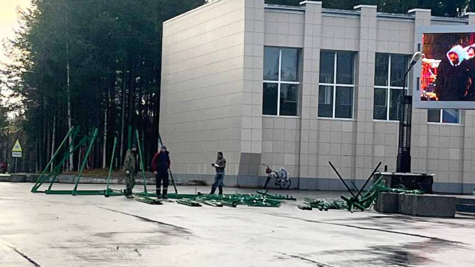 На главной площади Полярных Зорь устанавливают новогоднюю ёлку. Об этом рассказали очевидцы в соцсетях.