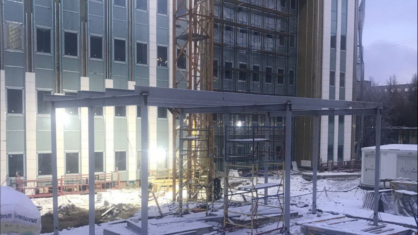Ранее СеверПост писал о том, что на мурманском онкодиспансере устанавливают фасад и витражи.