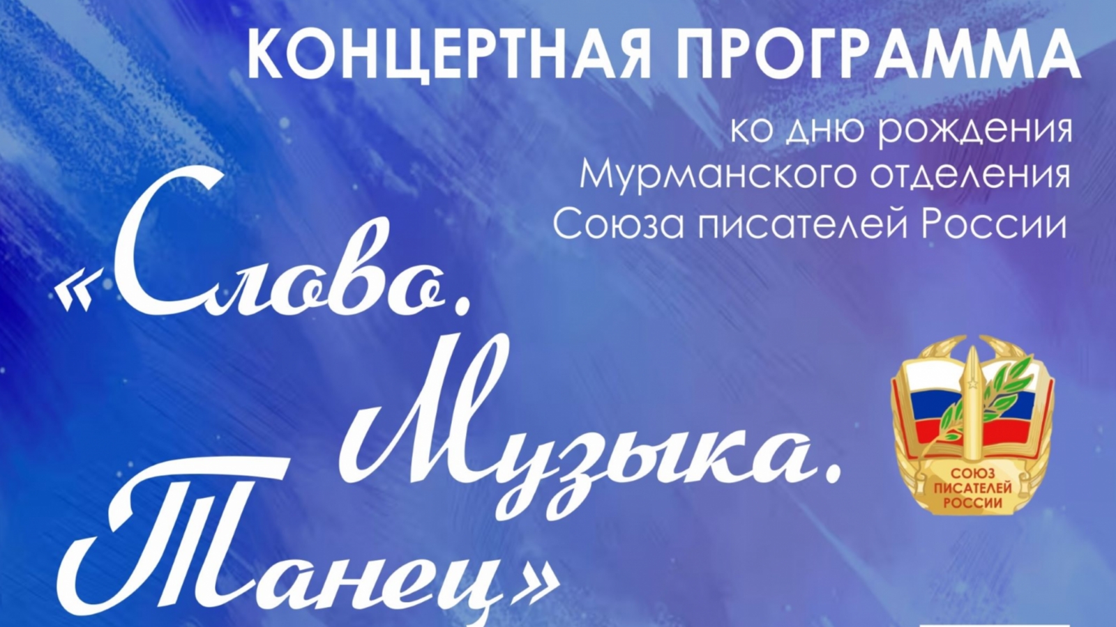 4 декабря в 19.00 в Центре современного искусства «Сопки 21А» состоится концертная программа «Слово. Музыка. Танец», посвящённая дню рождения Мурманского отделения Союза писателей России (12+).