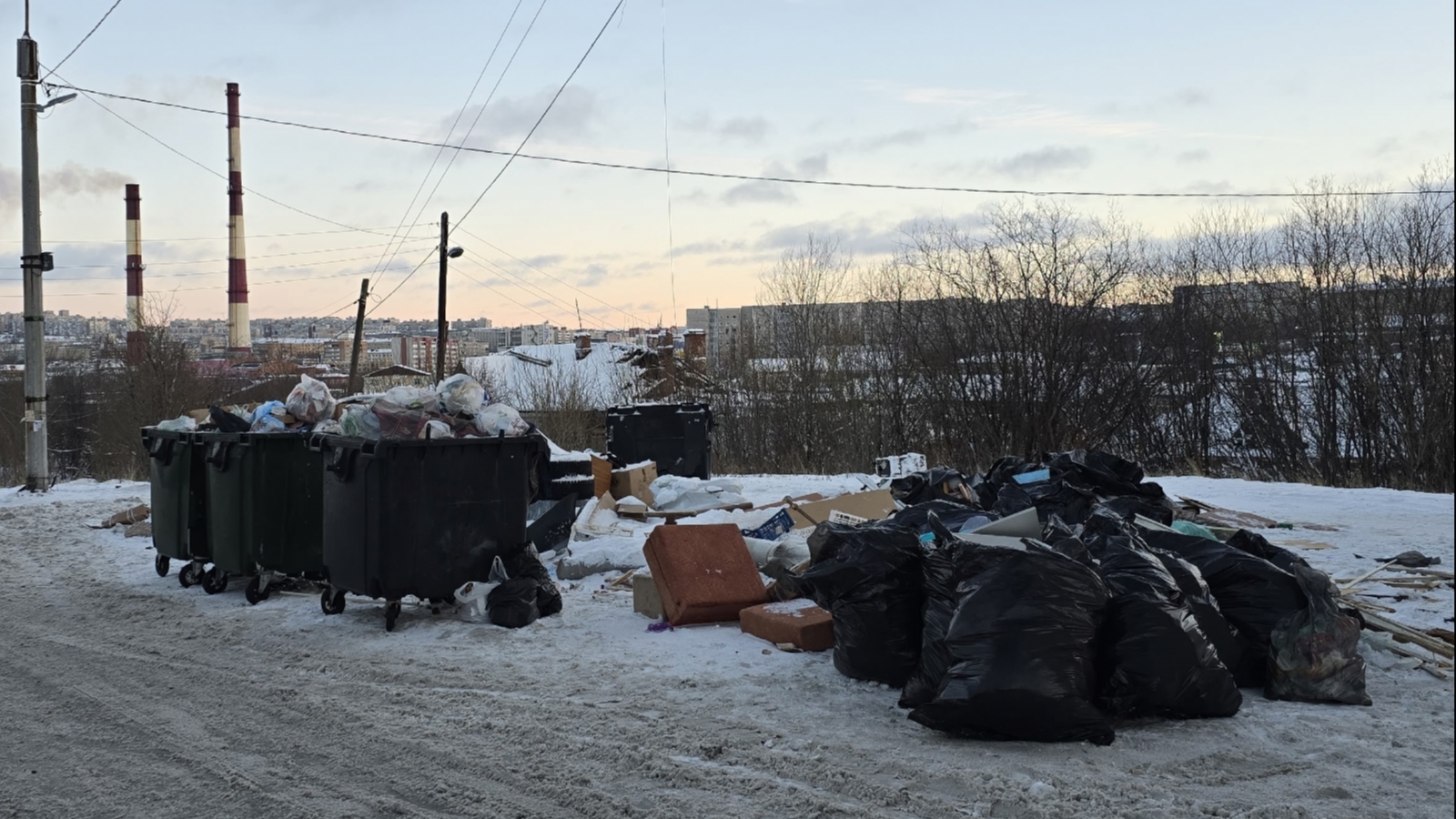 «Фестивальная, 9. Раньше у нас мусор вывозили ежедневно, а теперь - его горы. В чёрных мешках - это мусор из мусоропровода, потому что в контейнеры не влезло. Сегодня ночью дворник выгружал вручную, и это ещё не всё, ему мешков не хватило», - возмущены мурманчане.
