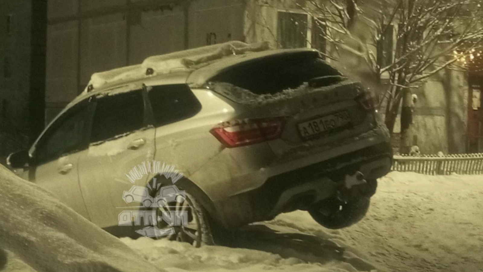В районе Мурманска Росляково местных жителей сильно удивило, как автолюбитель припарковал свою машину.