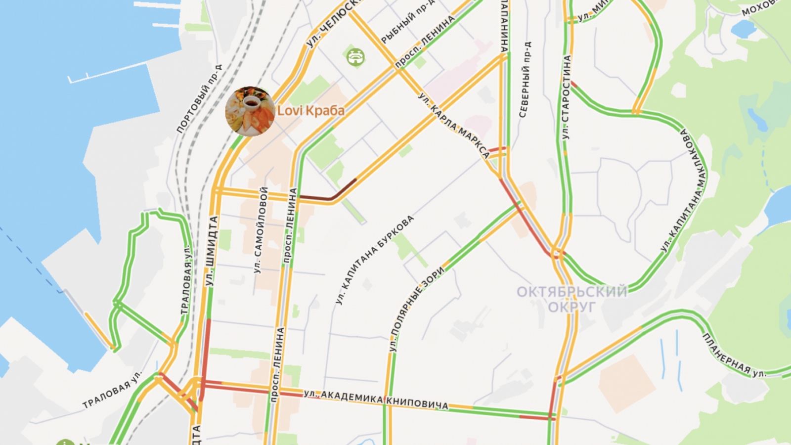 «Стоит» практически весь центр Мурманска. В особенности пробки сосредоточены в районе улиц Шмидта, Комсомольская, Софьи Перовской, Дзержинского.