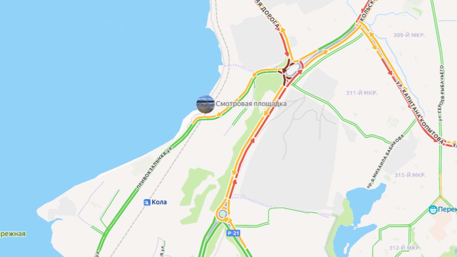 В Мурманске на трассе от стелы к Кольско-Кильдинскому шоссе встали фуры.