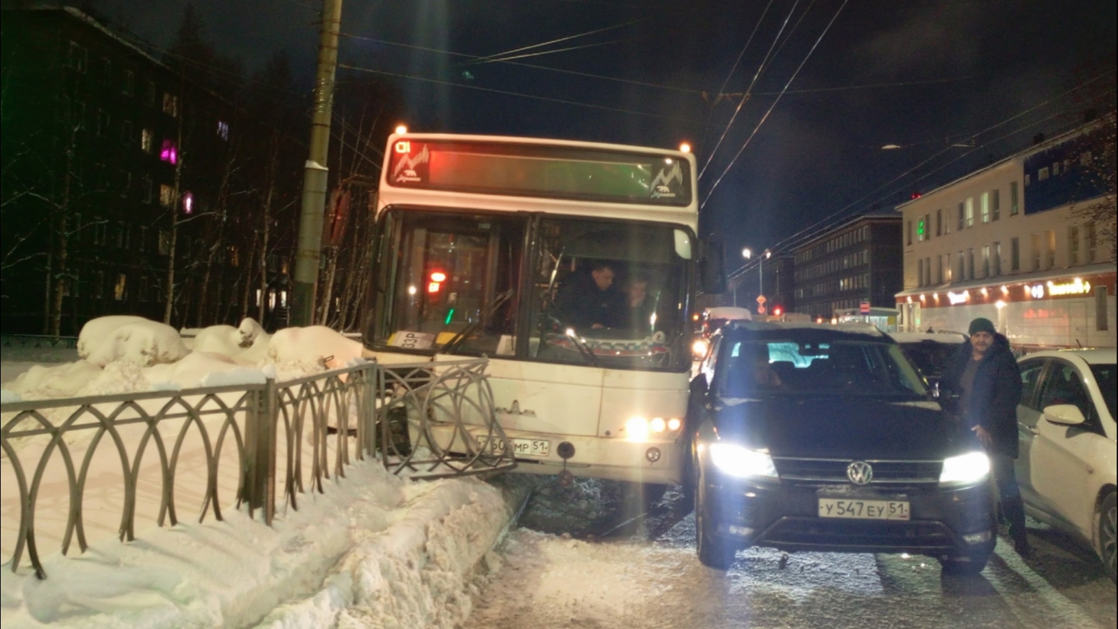 В Мурманске на проспекте Кирова произошла авария с участием пассажирского автобуса и легковушки. Об этом 16 декабря рассказали очевидцы.