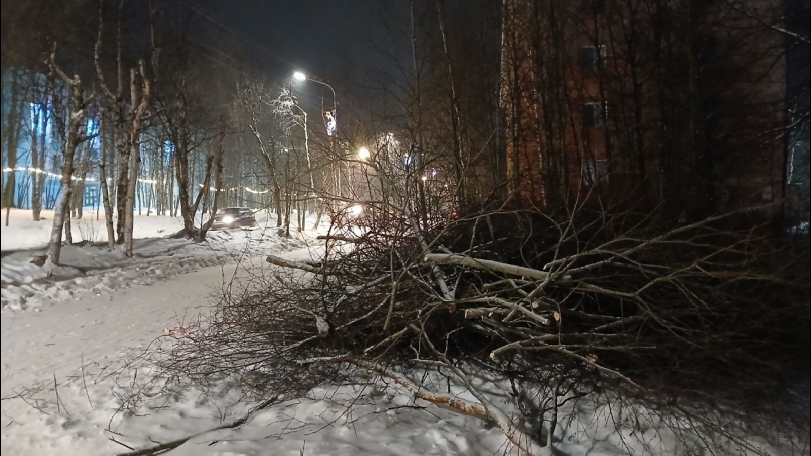 По всей Кандалакше не могут убрать спиленные ветки деревьев