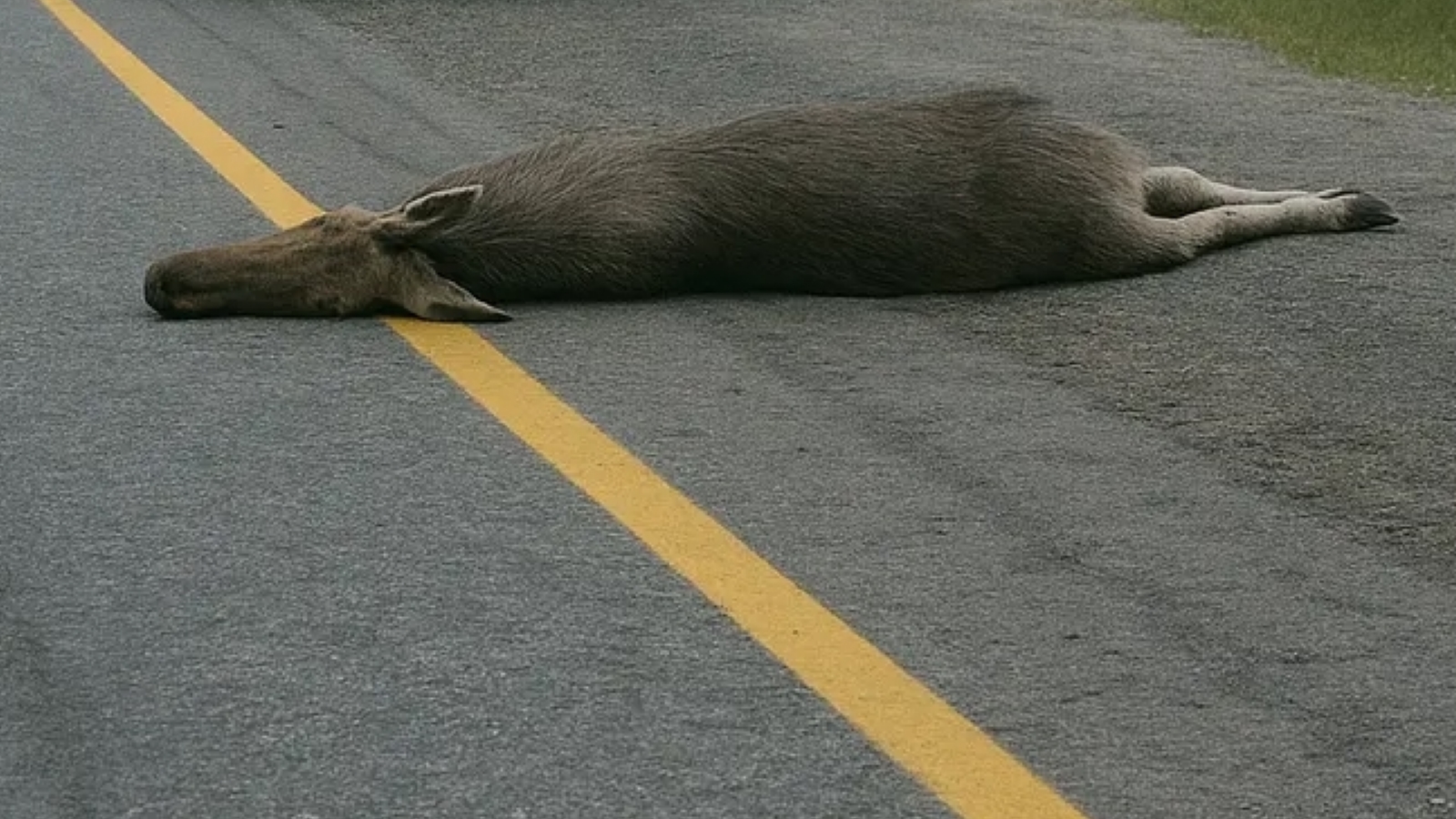 На трассе Р-21 «Кола» автомобиль сбил выбежавшего на дорогу лося. Животное погибло.