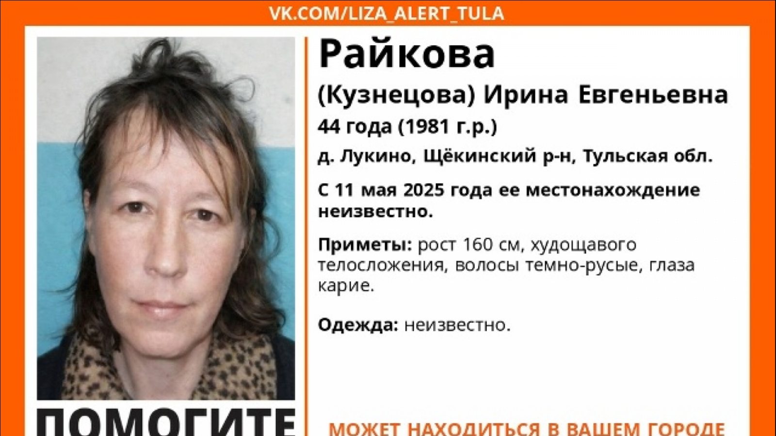 В Мурманской области ведут поиск 44-летней Ирины Райковой (Кузнецовой). Жительница деревни Лукино Щёкинкого района Тульской области пропала 11 мая.
