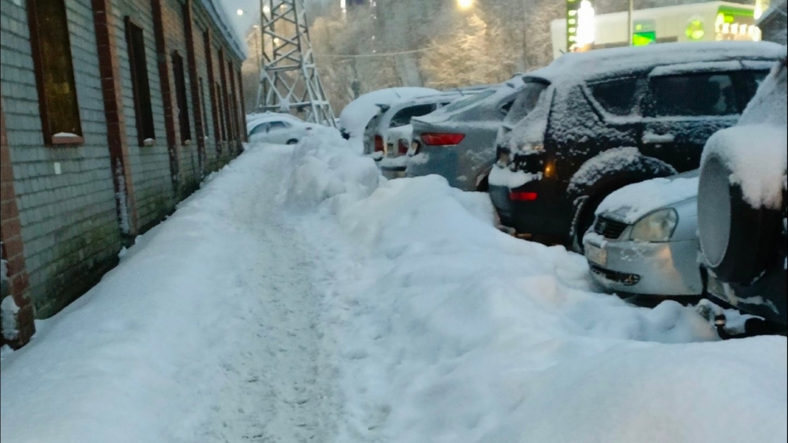 21 12 2025«Вот такая козья тропинка на Хибинском переулке. Организация очень усердно чистит парковку для своих сотрудников, сгребая снег на тротуар», - написала в паблик СеверПост автор фото.
