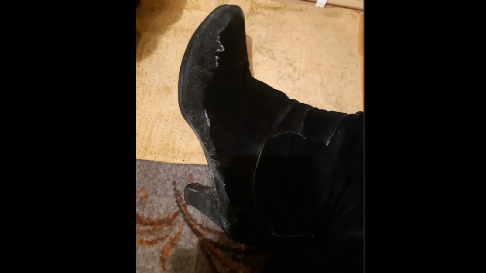 «Из-за реагентов, которые УДХ щедро наливает на дороги и тротуары в Мурманске, портится обувь! Кто будет возмещать ущерб?», - написала мурманчанка, добавив к жалобе снимок с испорченной обувью.