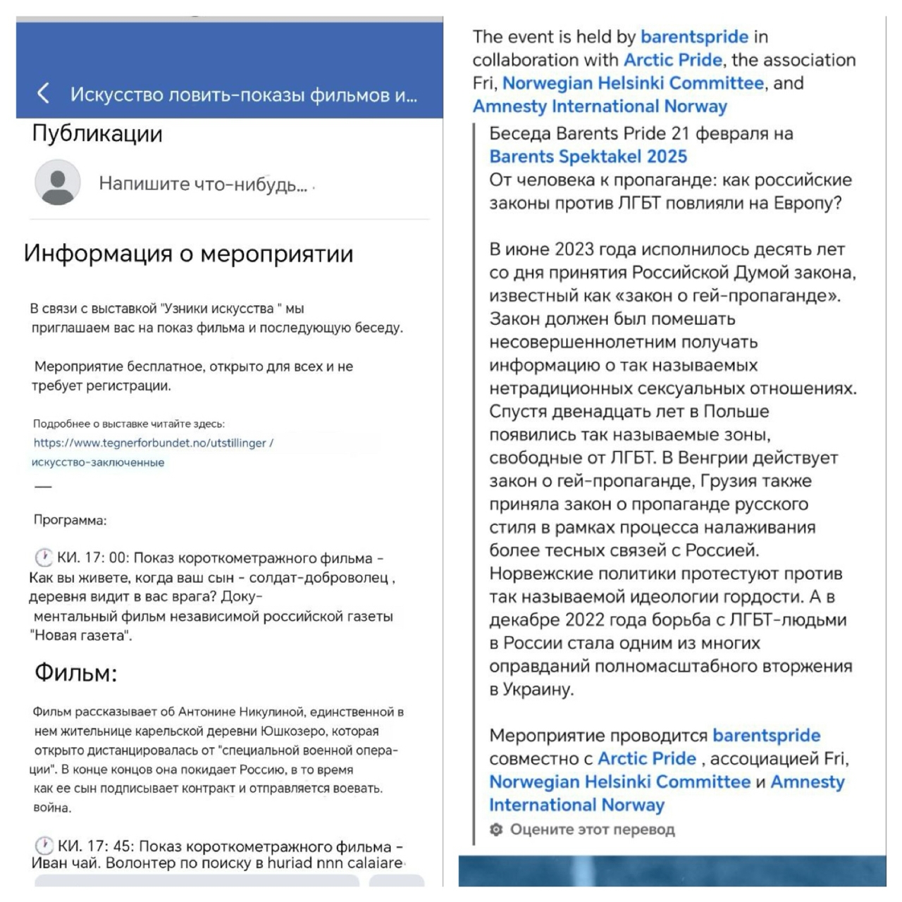Подобного там много. Есть и осуждение специальной военной операции, и флаг Украины, и сообщение об открытии в Осло выставки «Узники искусства» и много чего ещё.