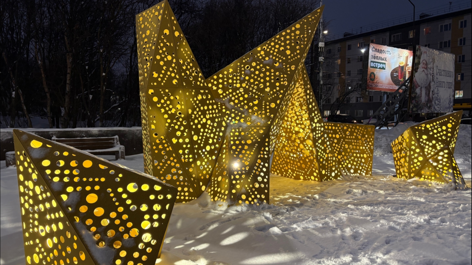 В областном центре на территории Семеновского озера установили световую инсталляцию. Об этом рассказали в паблике «Мурманские городские парки и скверы».
