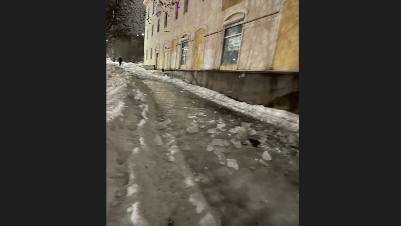 «Подъем к памятнику «Морякам, погибшим в мирное время» не посыпается песком и не чистится от слова совсем с начала зимы по стороне дома Челюскинцев, 37. Страшно ходить, а вынуждены, так как во дворе находится один из немногих в нашем районе садиков и школа!!! С крыши летят глыбы. Сегодня, отводя ребёнка в сад №156, чуть не стали жертвами одной из таких глыб. Тротуар в ужасном состоянии», - пожаловалась мурманчанка.