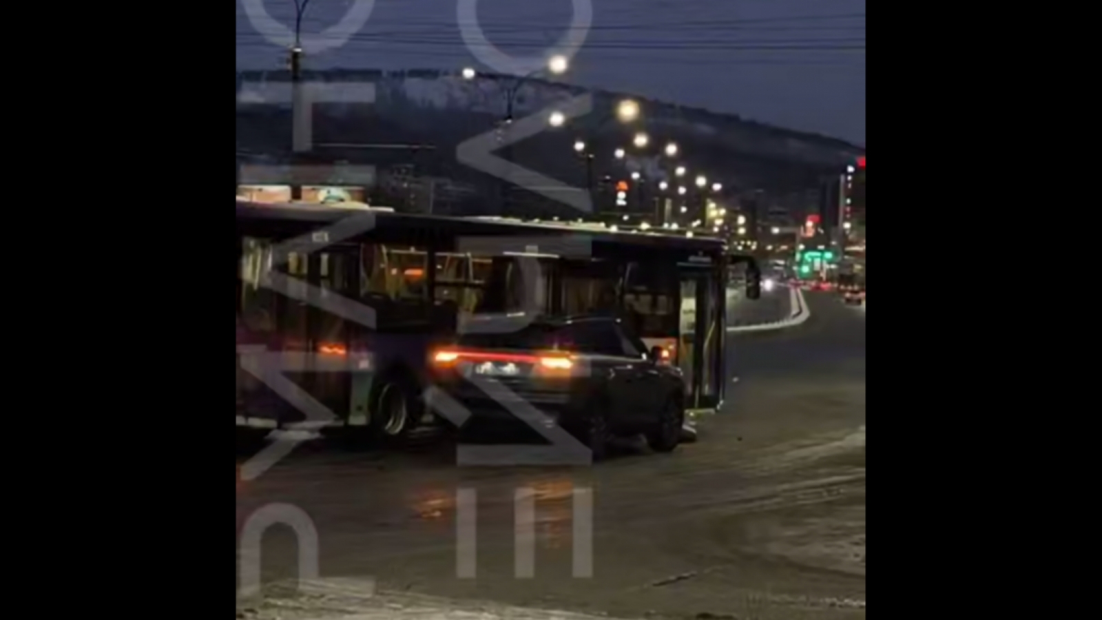Столкнувшиеся автобус и легковушка спровоцировали пробку в Мурманске
