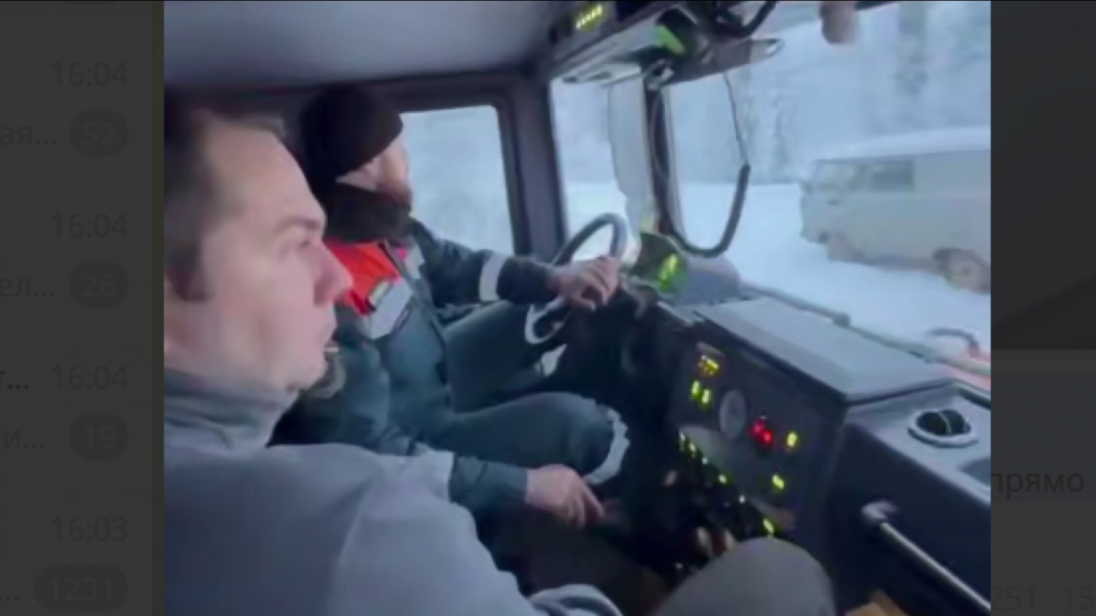 Губернатор Мурманской области Андрей Чибис выехал на место падения опор ЛЭП. Поездка проходит на вездеходе «Бурлак».