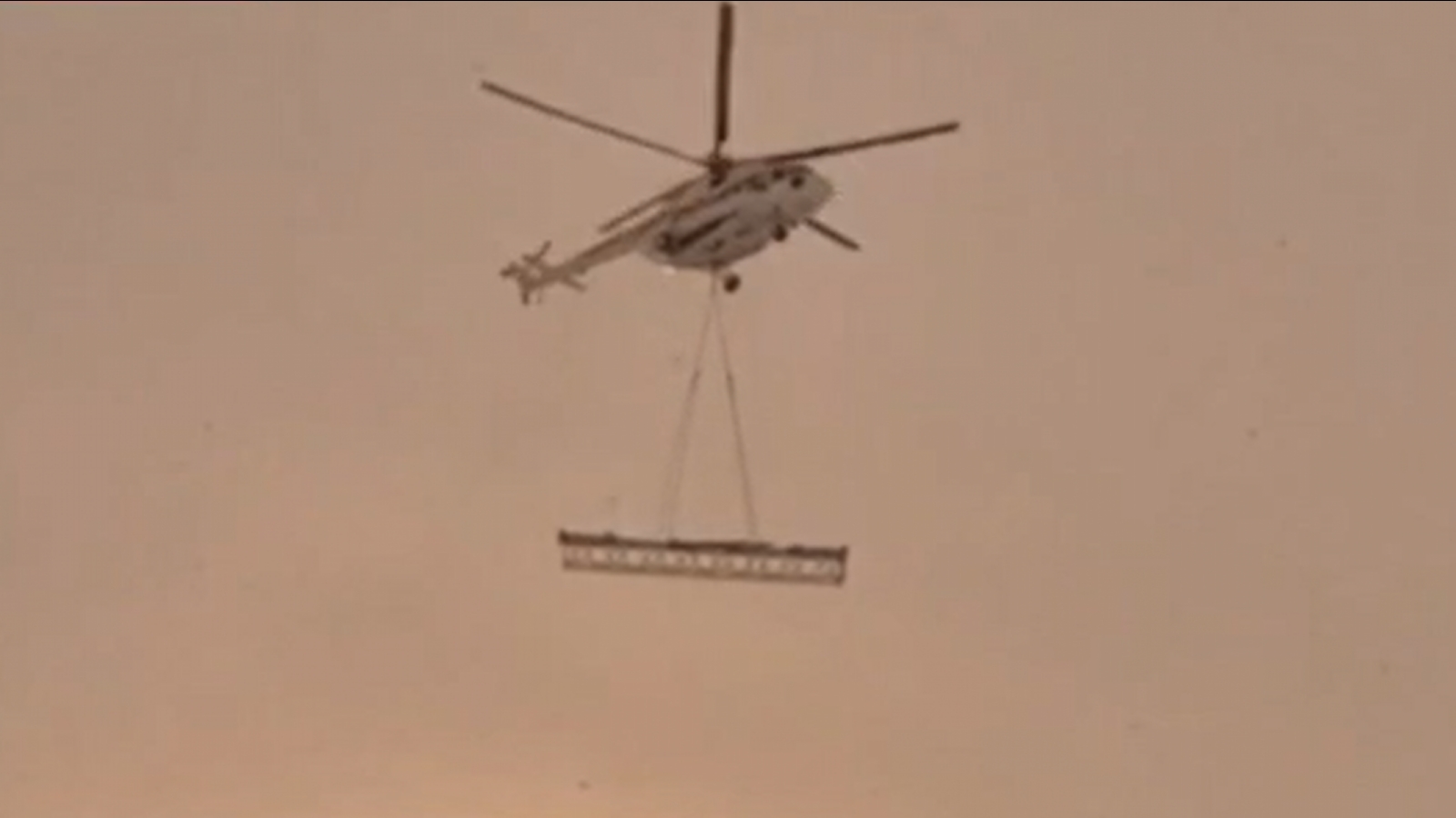 Четыре опоры доставили в тундру вертолётом и вездеходом. Ещё одну Россети планируют привезти 28 января.