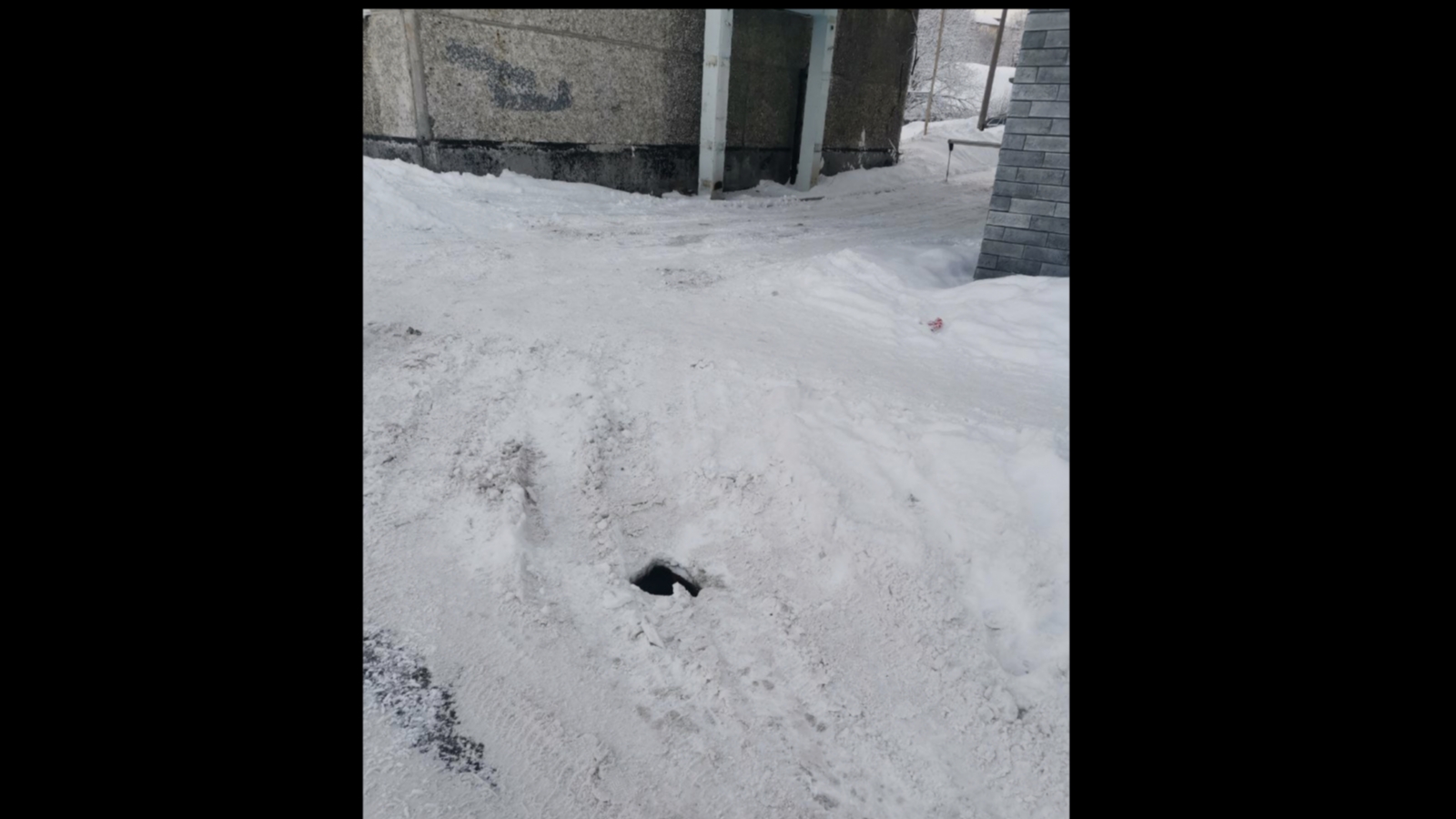 У здания Мурманского строительного колледжа на улице Инженерной образовался настоящий «портал» в подземелье.