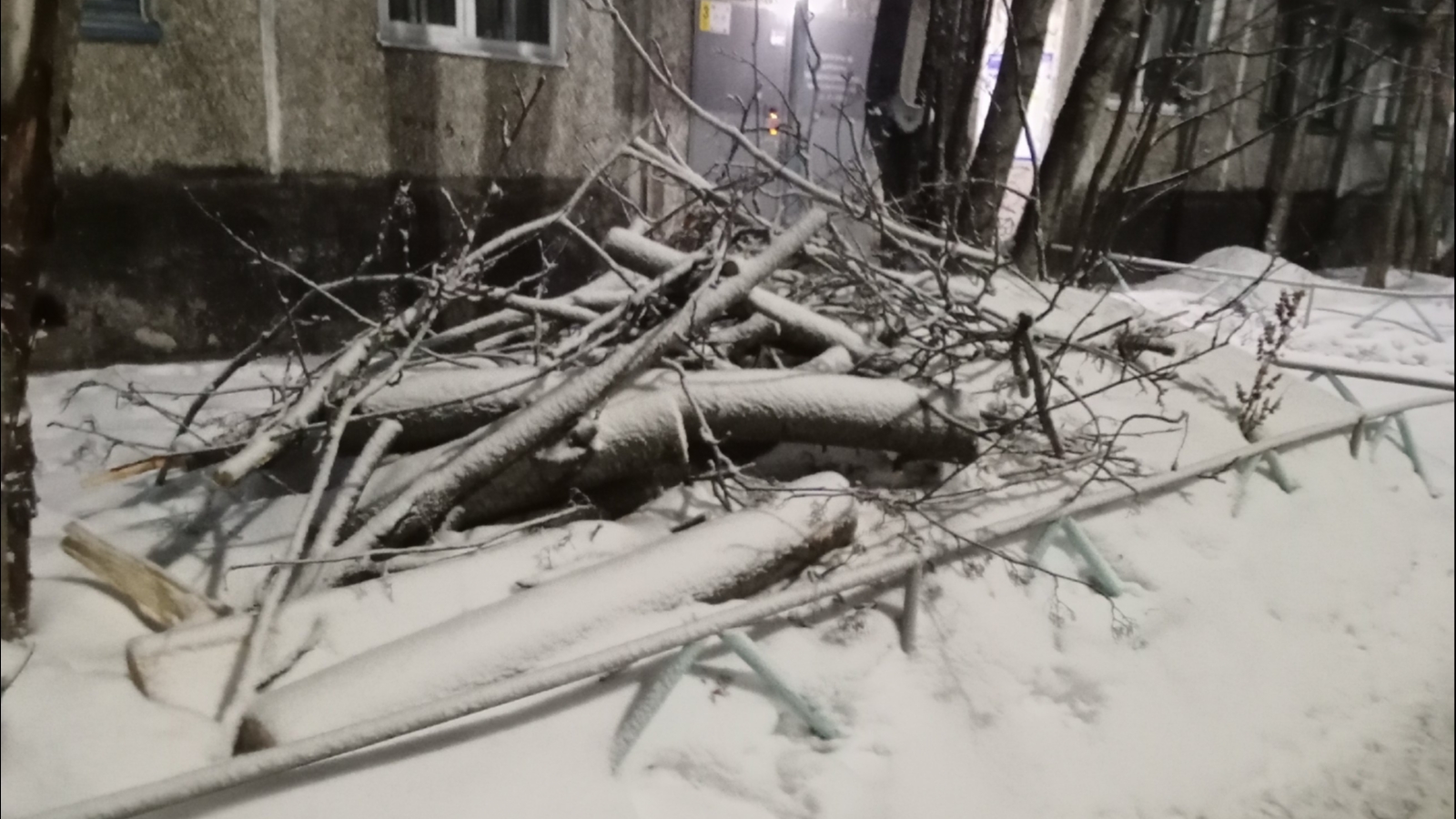 Мурманчане три недели ждут вывоза спиленных деревьев