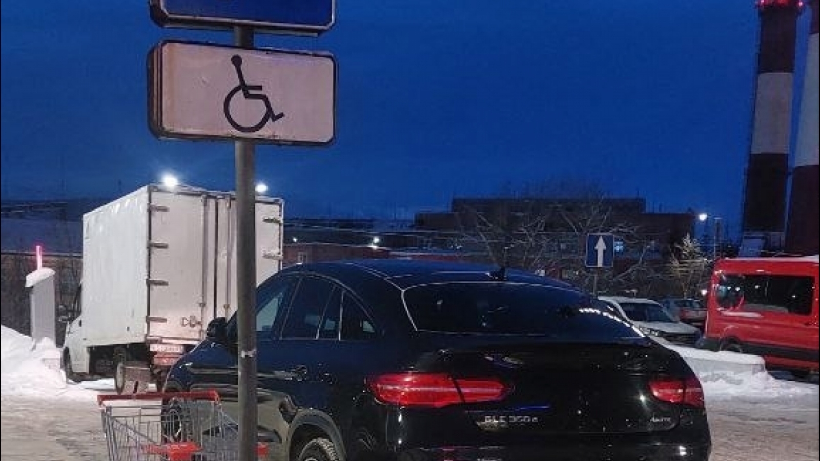 Мурманчан возмутило хамское поведение водителя на парковке возле гипермаркета в центре города. Владелец чёрной BMW занял парковочное место, предназначенное для инвалидов. Фотографию с места инцидента опубликовали очевидцы в соцсетях.