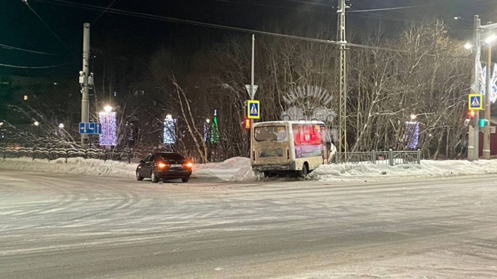 В Мурманске на пересечении проспекта Героев-североморцев и улицы Хлобыстова произошла авария с участием легковушки и маршрутки. Об этом рассказали очевидцы.